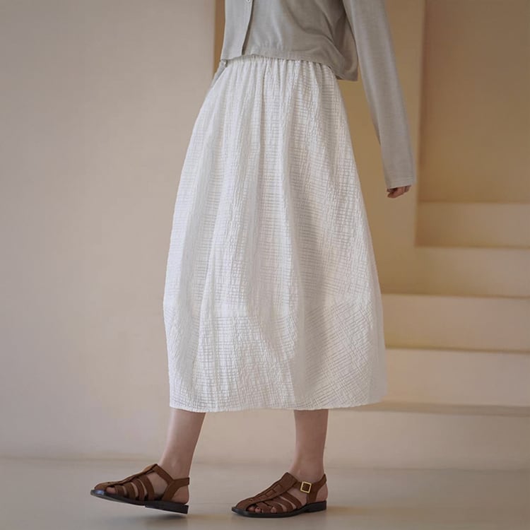 チェック柄にほんのり透かし模様が施されたコクーンスカート。ボリューム感と丸みを帯びたシルエットが可愛らしく、存在感抜群の主役級アイテムです。