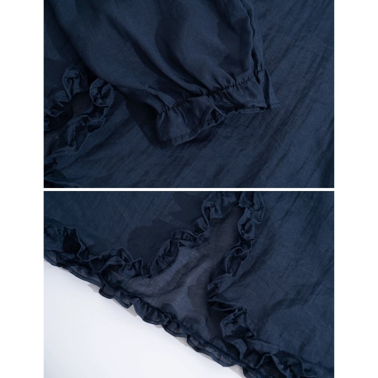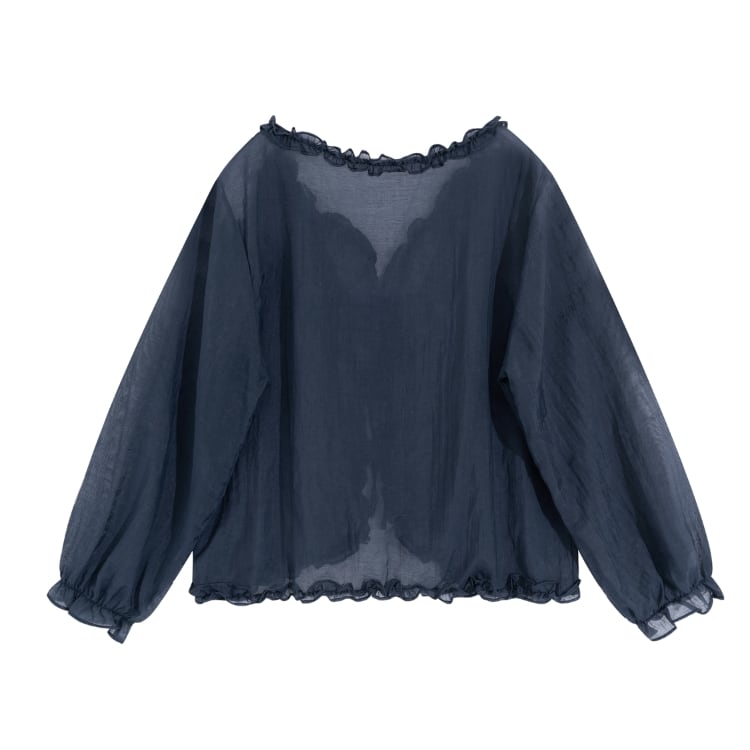 軽やかな透け感が涼しげな、シアーカーディガン。フリルを贅沢にあしらい、胸元のレースアップデザインがフェミニンさ、大人可愛い印象を演出。冷房の効いた室内や、日差しが気になる屋外でもさらっとボレロ感覚で羽織れて、最適な一枚です。