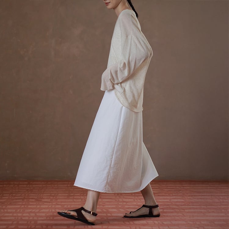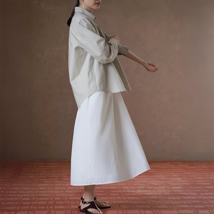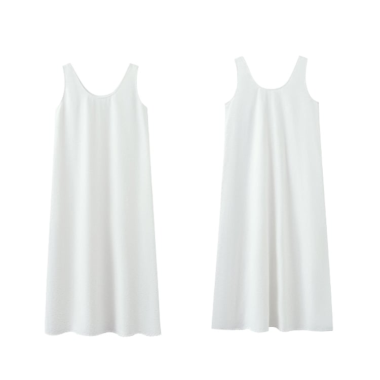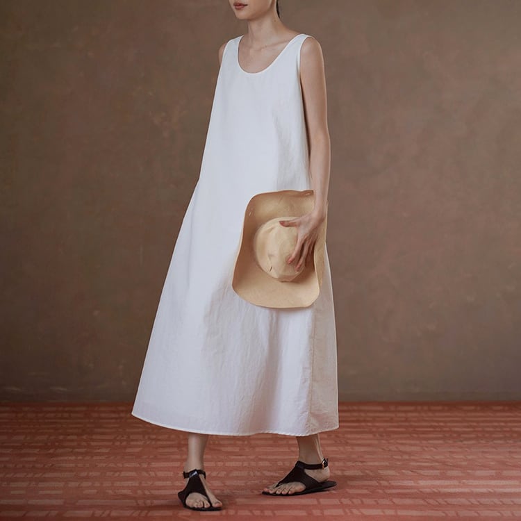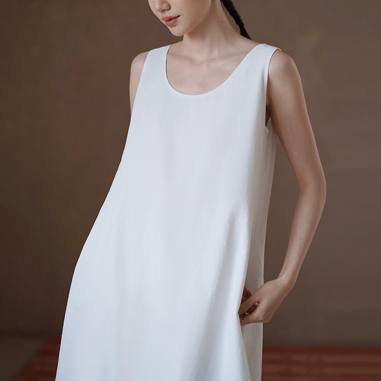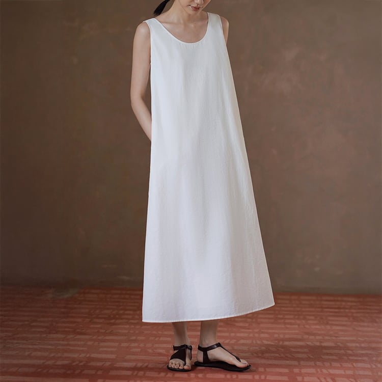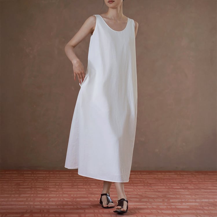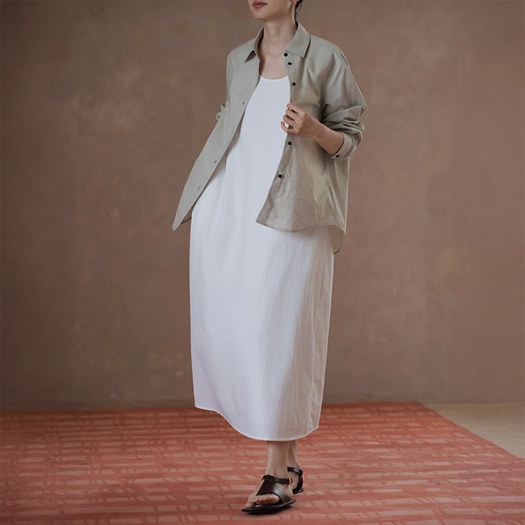 上品なUネックラインと、ゆったりとしたAラインシルエットが、女性らしさを引き立てるワンピース。ミニマルデザインが、着る人のスタイリング、個性を引き立てる、洗練された大人のリラックススタイルにぴったりの一着です。