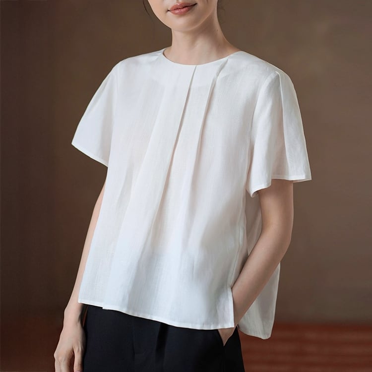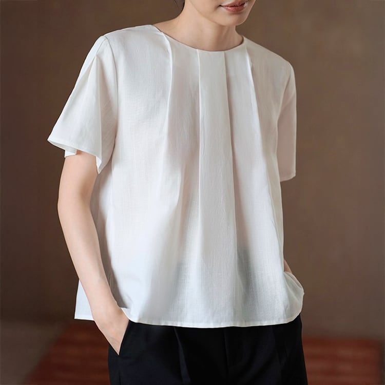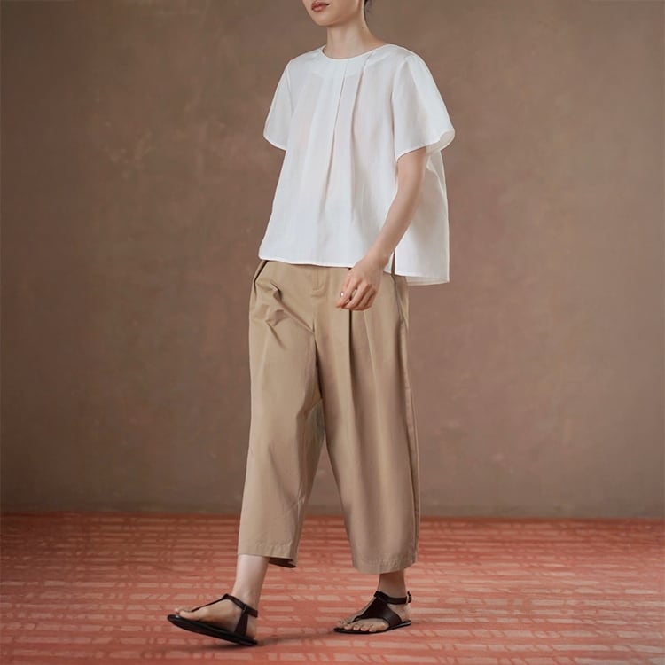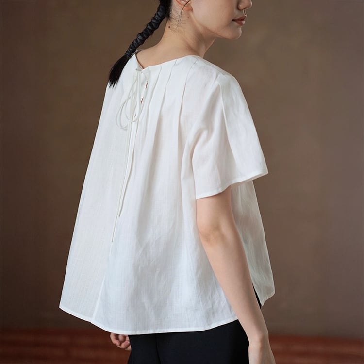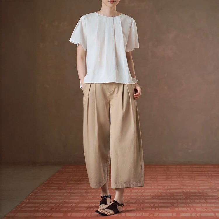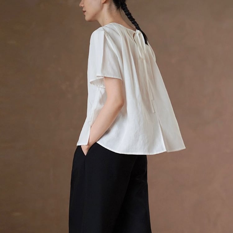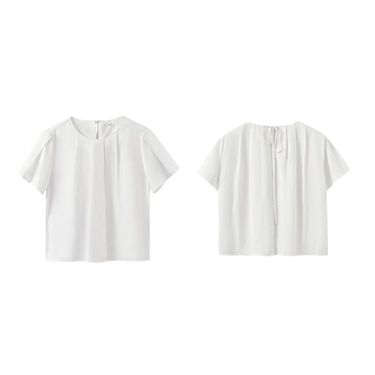 前後に立体感のあるタックプリーツを施した、シンプルながらも洗練された印象のトップス。背中のリボンデザインで後ろ姿も抜かりなく、ふんわりとした袖が、女性らしさを引き立てます。オフィススタイル、休日コーデにと、シーンを選ばず活躍する万能アイテムです。