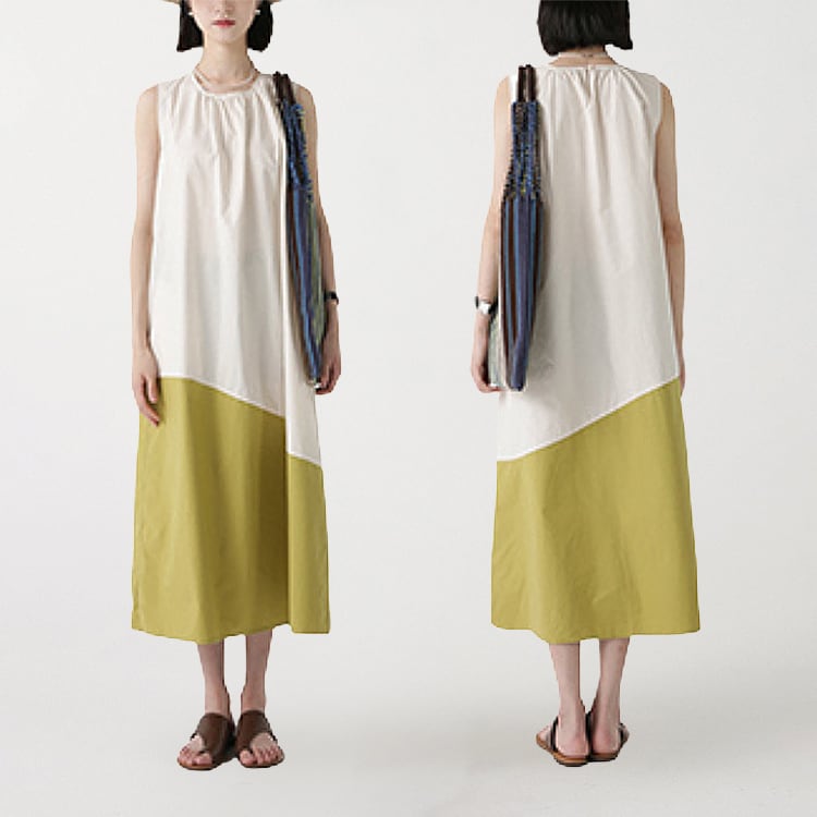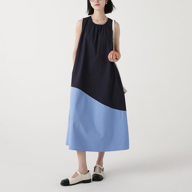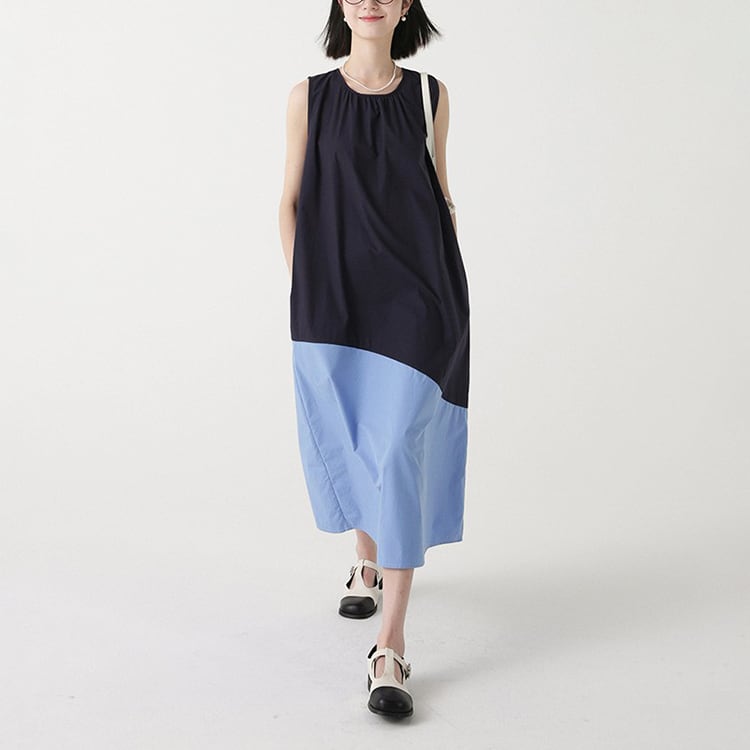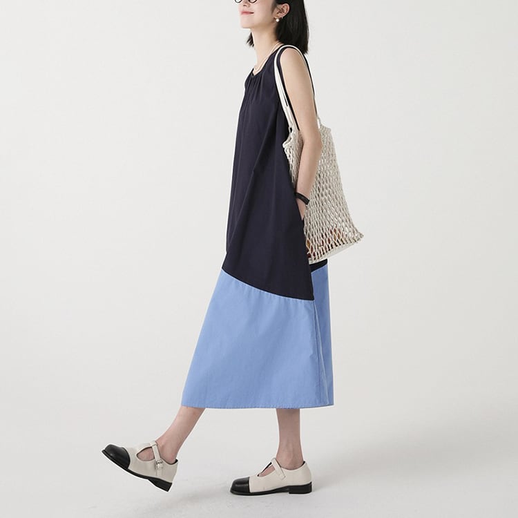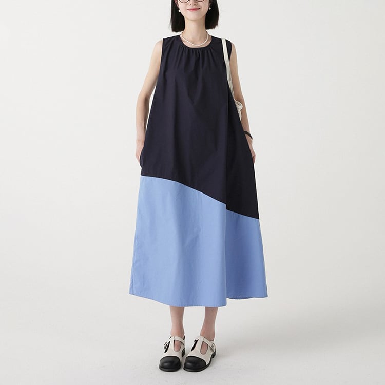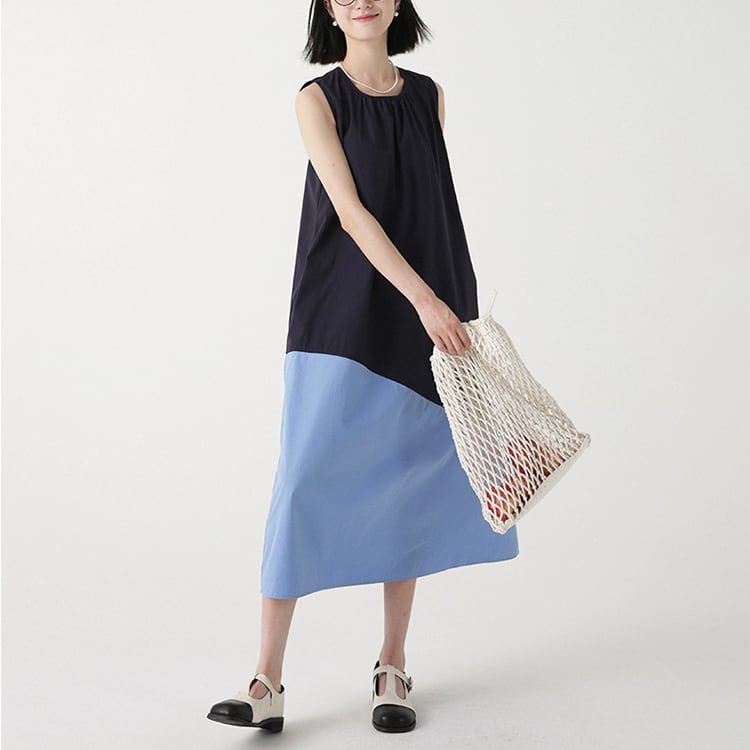 カラーの切替えとアシンメトリーなデザインが、特徴的なノースリーブワンピース。ゆったりAラインシルエットが、体型カバーと華奢見せを。大人のリラックススタイルを格上げできる、着るだけでサマになる一着です。 【サイズ】 M: 肩幅32cm / バスト102cm / ウエスト114cm / 裾156cm / 着丈112cm L: 肩幅33cm / バスト106cm / ウエスト118cm / 裾160cm / 着丈113cm *モデル身長166cm(Mサイズ着用) 【カラー】 アイボリー×マスタード / ネイビー×ブルー 【素材】 コットン100% 【注意事項】 ・タイミングによっては商品在庫切れにより、注文キャンセルとさせていただく恐れもございますので、予めご了承くださいませ。 ・こちらは輸入品となります。日本製とは検品基準が異なる為、新品未使用品でもごくわずかな汚れやほつれがある場合もございます。 ・仕入れ工場を変えることがあるため、記載サイズと若干異なる場合がございます。 ・商品の色味は、お手持ちのスマートフォン画面によって実物と若干異なる場合がございます。 ・イメージ違いやサイズ交換等、お客さまご都合による交換、返品は対応出来かねます。 ■選べるお支払い方法 ・クレジットカード決済(VISA/Master/JCB/AMEX) ・Amazon pay ・キャリア決済(docomo/au/Softbank/Y!mobile) ・あと払いPayID ■お届けについて こちらの商品は海外店舗より直接発送となる為、 ご入金から10日~3週間前後での発送となります。 ↓ご購入前にこちらをお読みください https://closetly.shopselect.net/about