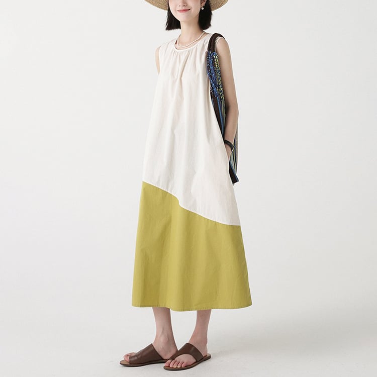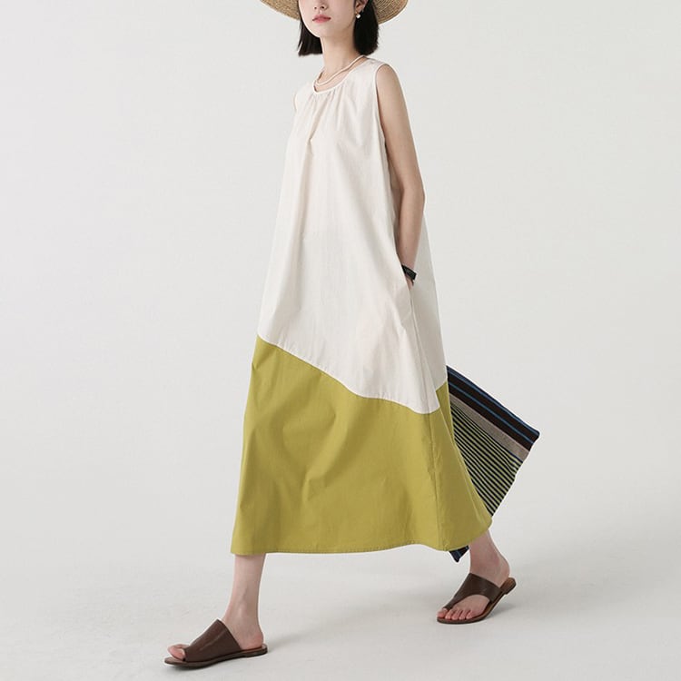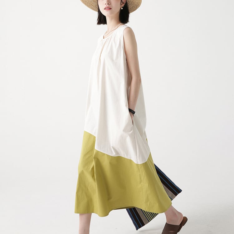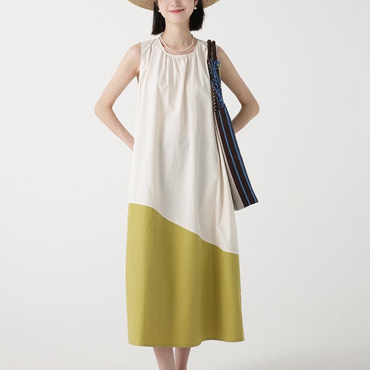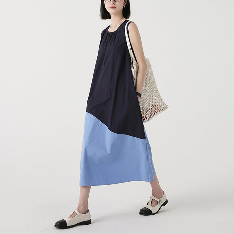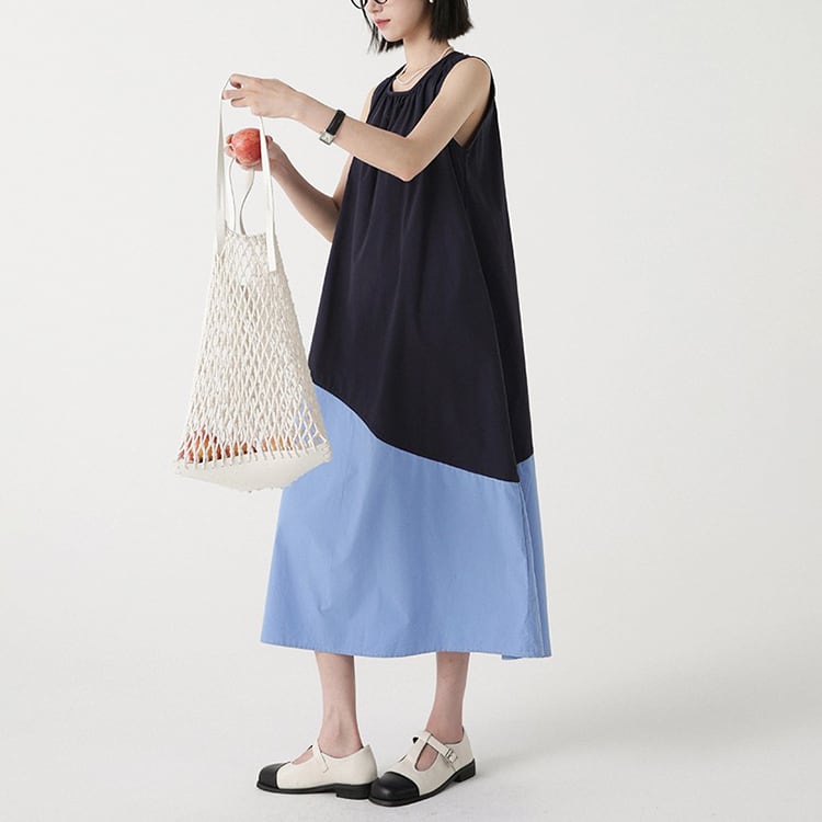カラーの切替えとアシンメトリーなデザインが、特徴的なノースリーブワンピース。ゆったりAラインシルエットが、体型カバーと華奢見せを。大人のリラックススタイルを格上げできる、着るだけでサマになる一着です。 【サイズ】 M: 肩幅32cm / バスト102cm / ウエスト114cm / 裾156cm / 着丈112cm L: 肩幅33cm / バスト106cm / ウエスト118cm / 裾160cm / 着丈113cm *モデル身長166cm(Mサイズ着用) 【カラー】 アイボリー×マスタード / ネイビー×ブルー 【素材】 コットン100% 【注意事項】 ・タイミングによっては商品在庫切れにより、注文キャンセルとさせていただく恐れもございますので、予めご了承くださいませ。 ・こちらは輸入品となります。日本製とは検品基準が異なる為、新品未使用品でもごくわずかな汚れやほつれがある場合もございます。 ・仕入れ工場を変えることがあるため、記載サイズと若干異なる場合がございます。 ・商品の色味は、お手持ちのスマートフォン画面によって実物と若干異なる場合がございます。 ・イメージ違いやサイズ交換等、お客さまご都合による交換、返品は対応出来かねます。 ■選べるお支払い方法 ・クレジットカード決済(VISA/Master/JCB/AMEX) ・Amazon pay ・キャリア決済(docomo/au/Softbank/Y!mobile) ・あと払いPayID ■お届けについて こちらの商品は海外店舗より直接発送となる為、 ご入金から10日~3週間前後での発送となります。 ↓ご購入前にこちらをお読みください https://closetly.shopselect.net/about