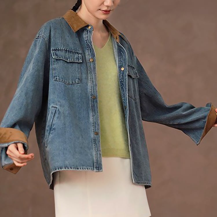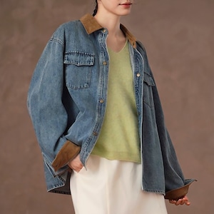 ヴィンテージ感漂うデニムジャケット。コーデュロイの襟とカフスがシーズンムードを高め、秋冬のスタイリングをぐっと格上げしてくれます。トレンドに左右されない長く愛せるデザイン、ライトアウターとして大活躍する優秀アイテムです。