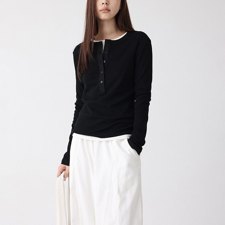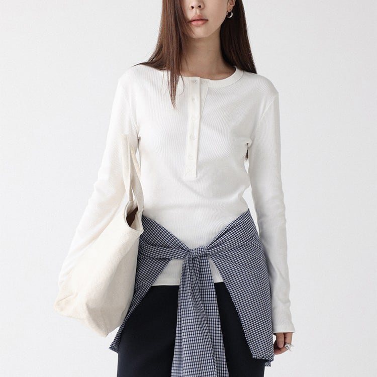すっきりとしたシルエットとヘンリーネックの程よいカジュアル感、上品なリブ編み風の生地感が魅力のTシャツ。また伸縮性があり、身体に優しくフィットしながらも窮屈さを感じさせない絶妙な着心地。フロントのボタンデザインがアクセントとなり、シンプルだからこそディテールの良さが際立つアイテムです。 【サイズ】 S: 肩幅40cm / バスト80cm / 袖丈60cm / 袖口19cm / 裾78cm / 着丈60cm M:肩幅41cm / バスト84cm / 袖丈61cm / 袖口20cm / 裾82cm / 着丈61cm L: 肩幅43cm / バスト88cm / 袖丈62cm / 袖口21cm / 裾86cm / 着丈62cm *モデル身長168cm(Lサイズ着用) 【カラー】 ホワイト / ブラック / グレー 【素材】 コットン46% レーヨン46% スパンデックス8% 【注意事項】 ・タイミングによっては商品在庫切れにより、注文キャンセルとさせていただく恐れもございますので、予めご了承くださいませ。 ・こちらは輸入品となります。日本製とは検品基準が異なる為、新品未使用品でもごくわずかな汚れやほつれがある場合もございます。 ・仕入れ工場を変えることがあるため、記載サイズと若干異なる場合がございます。 ・商品の色味は、お手持ちのスマートフォン画面によって実物と若干異なる場合がございます。 ・イメージ違いやサイズ交換等、お客さまご都合による交換、返品は対応出来かねます。 ■選べるお支払い方法 ・クレジットカード決済(VISA/Master/JCB/AMEX) ・Amazon pay ・キャリア決済(docomo/au/Softbank/Y!mobile) ・あと払いPayID ■お届けについて こちらの商品は海外店舗より直接発送となる為、 ご入金から10日~3週間前後での発送となります。 ↓ご購入前にこちらをお読みください https://closetly.shopselect.net/about