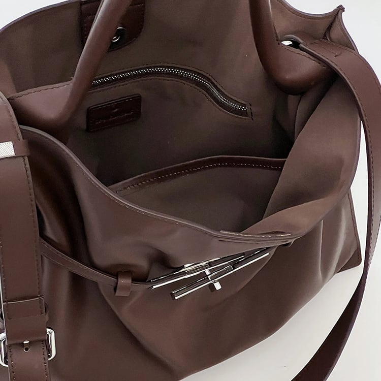シンプルなデザインにエレガントなメタルアクセントが映えるバッグ。ワンショルダーで上品に、クロスボディでカジュアルにとシーンに合わせて2way仕様。ミニマルなコーデにプラスするだけで洗練されたスタイルに仕上がります。
