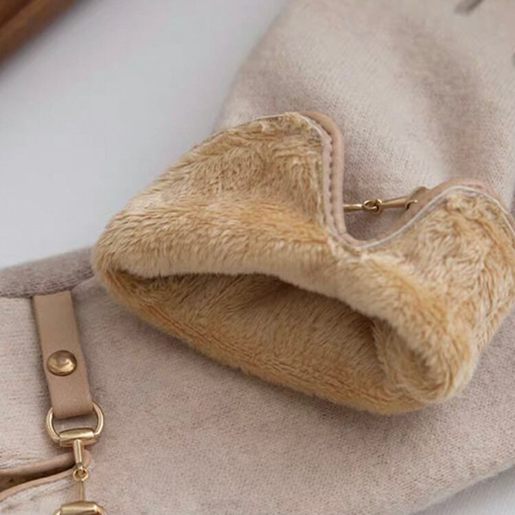 タッチパネル対応で、スマホ操作も快適にこなせる、実用性とデザイン性を兼ね備えたグローブ。内側は柔らかな加厚仕様ベルベット裏地で保温性も抜群。シンプルでいてどこかラグジュアリーな、ゴールドのメタルディテールが手元に品格を添えてくれる手袋です。