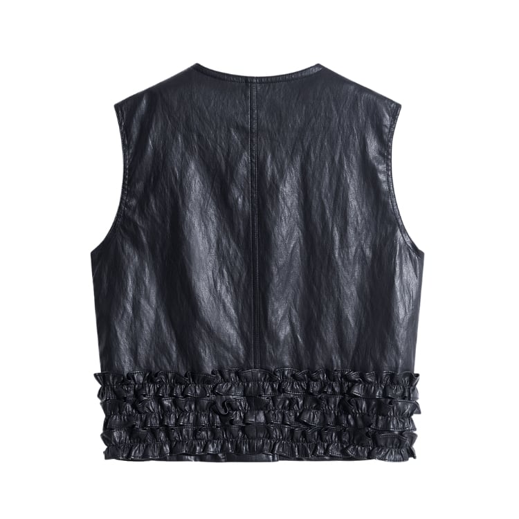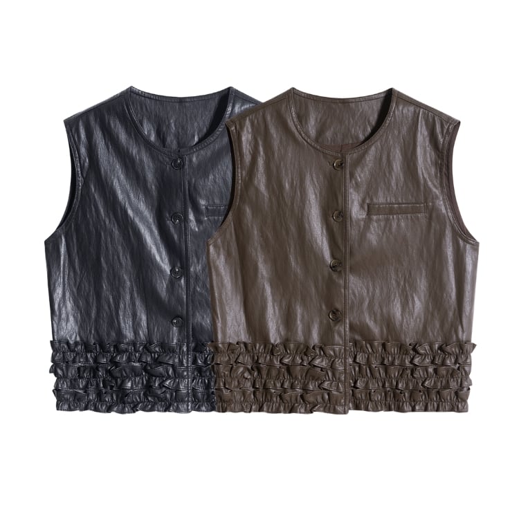 個性が光る、フェイクレザーベスト。クールネックが首元をすっきりと見せ、裾のギャザーフリルで女性らしく、甘辛ミックスなデザインに。ブラックでクールに、ブラウンでレトロに、お手持ちのシンプルなアイテムに重ねるだけで、ワンランク上のおしゃれが楽しめます。 【サイズ】 S:肩幅39cm / バスト94cm / 着丈61cm M:肩幅40cm / バスト96cm / 着丈62cm 【カラー】 ブラウン / ブラック 【素材】 ビスコース50% ポリウレタン40% 金属繊維10% 【注意事項】 ・タイミングによっては商品在庫切れにより、注文キャンセルとさせていただく恐れもございますので、予めご了承くださいませ。 ・こちらは輸入品となります。日本製とは検品基準が異なる為、新品未使用品でもごくわずかな汚れやほつれがある場合もございます。 ・仕入れ工場を変えることがあるため、記載サイズと若干異なる場合がございます。 ・商品の色味は、お手持ちのスマートフォン画面によって実物と若干異なる場合がございます。 ・イメージ違いやサイズ交換等、お客さまご都合による交換、返品は対応出来かねます。 ■選べるお支払い方法 ・クレジットカード決済(VISA/Master/JCB/AMEX) ・Amazon pay ・キャリア決済(docomo/au/Softbank/Y!mobile) ・あと払いPayID ■お届けについて こちらの商品は海外店舗より直接発送となる為、 ご入金から10日~3週間前後での発送となります。 ↓ご購入前にこちらをお読みください https://closetly.shopselect.net/about