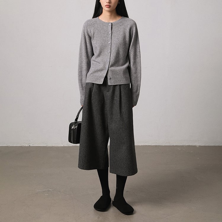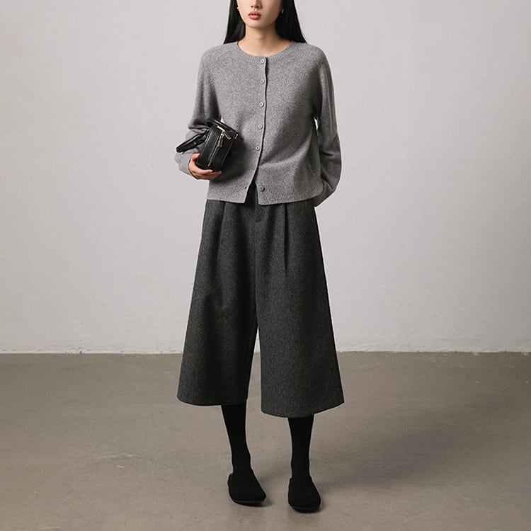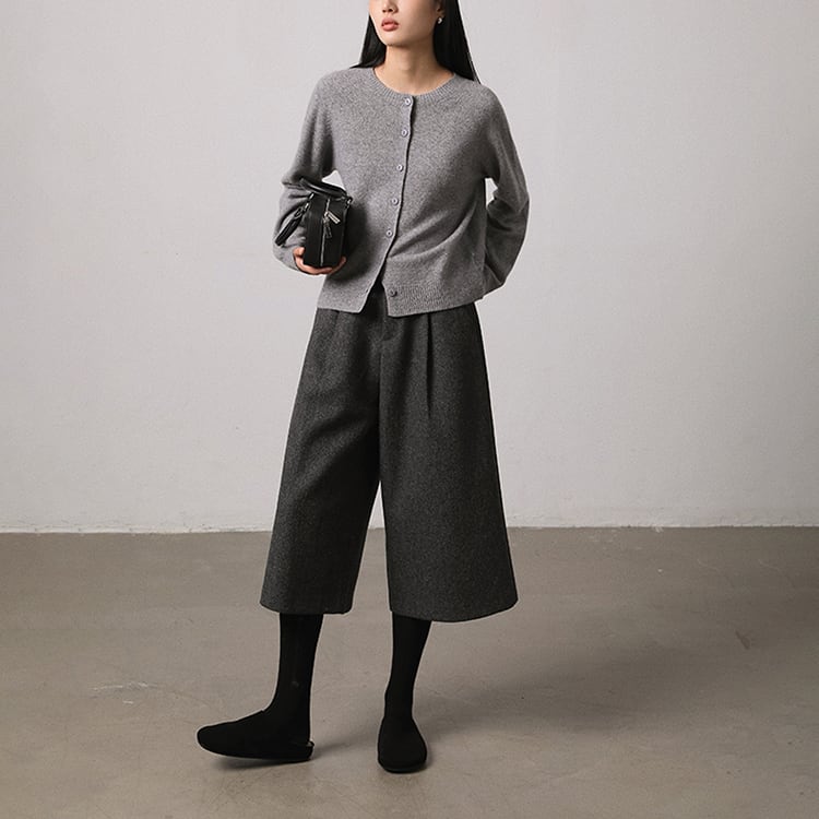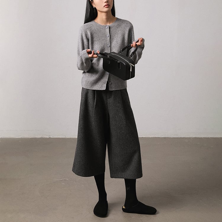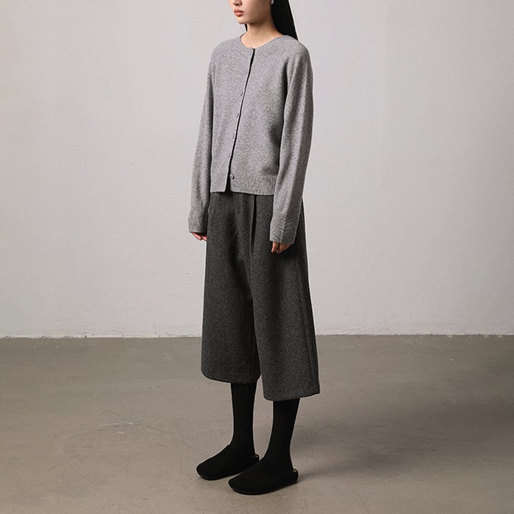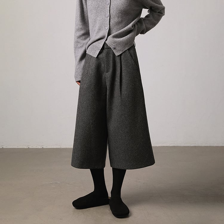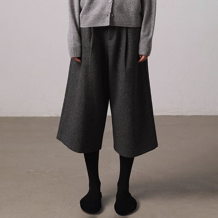秋冬の装いを格上げする、ウールライクなフレアガウチョパンツ。タック入りで立体感のあるシルエットを実現し、気になるヒップラインも自然にカバー。八分丈デザインでタイツやブーツとの相性も抜群のアイテムです。