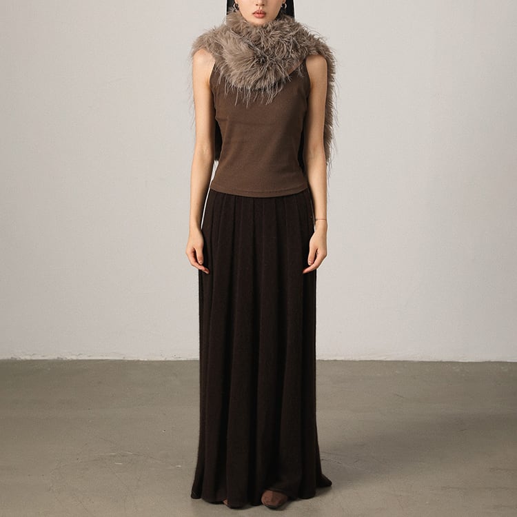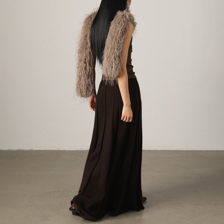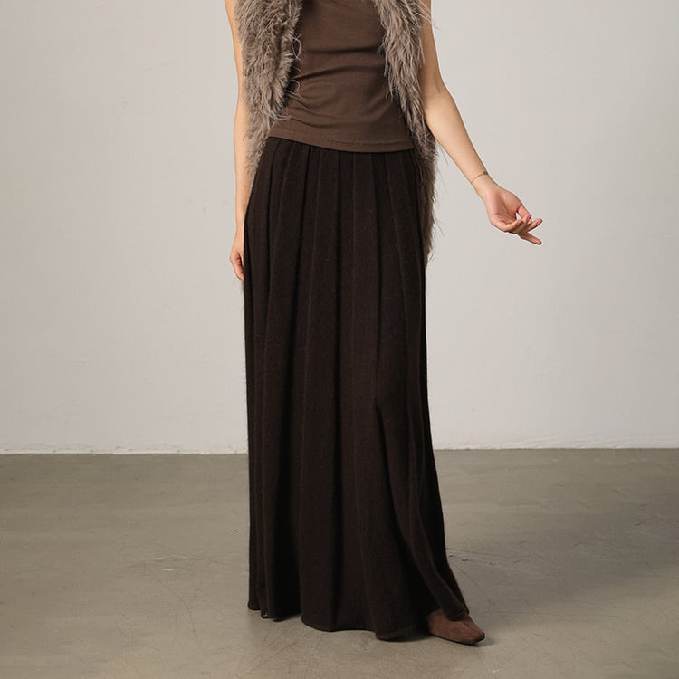 リブ調の編み地が縦ラインが特徴的なフレアスカート。しなやかな落ち感と柔らかなフレアラインが女性らしく、動くたびに上品な揺れを演出。タートルニットやショートブーツと合わせれば、こなれ感のある冬の大人スタイルが完成します。