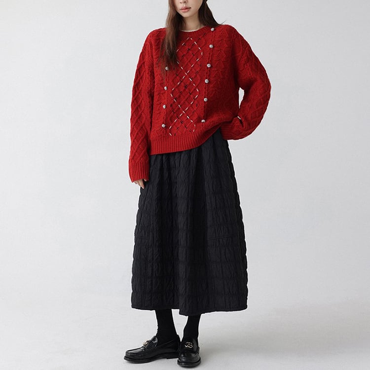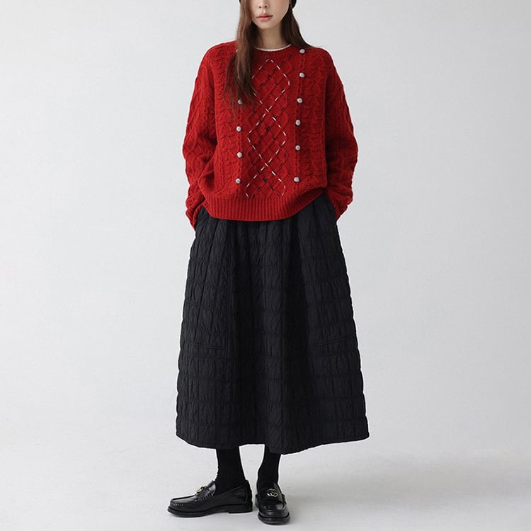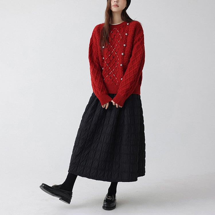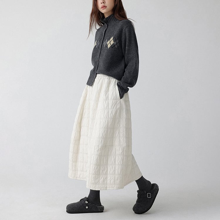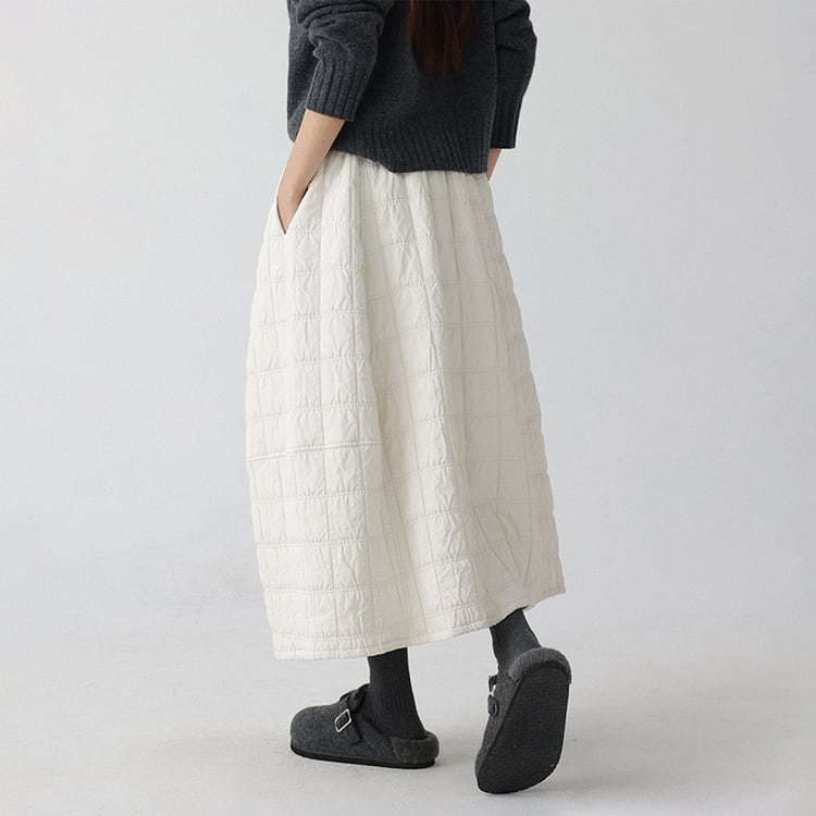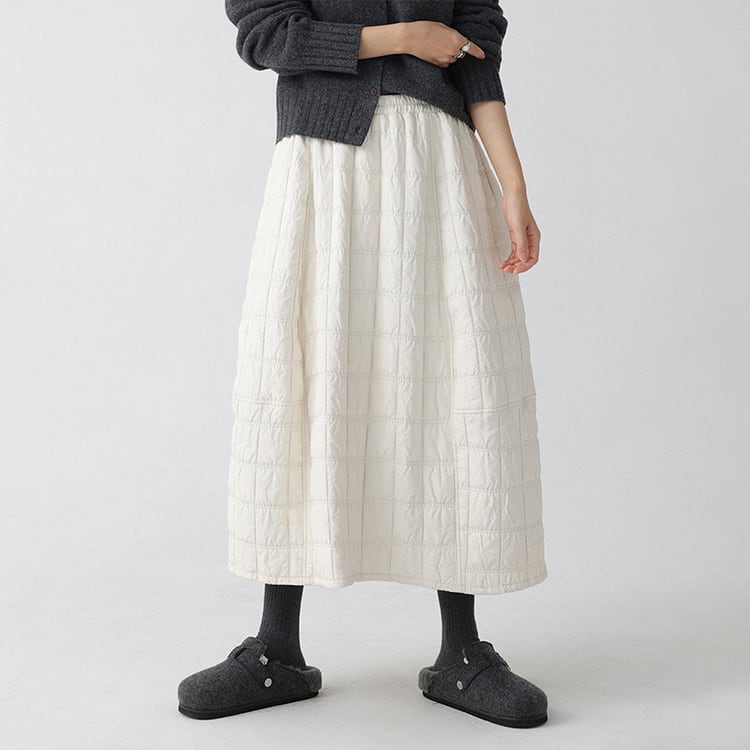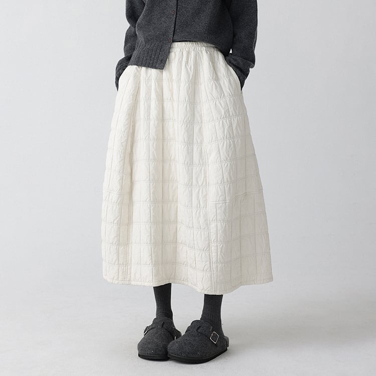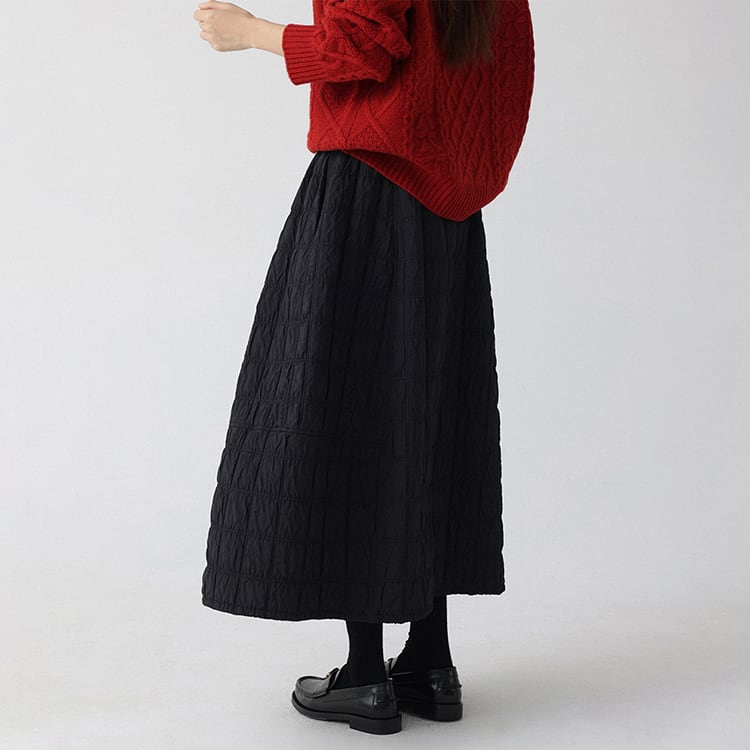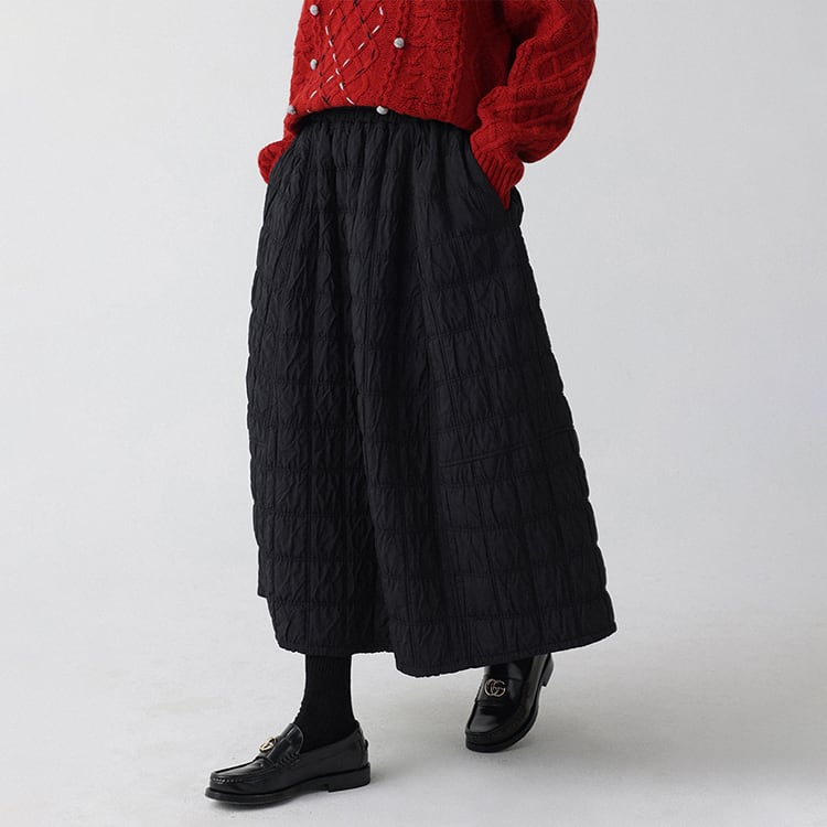軽量で暖かいキルティング生地を使用したAラインスカート。柔らかく落ち感のあるシルエットが特徴で、程よいボリュームのデザイン。ウエストは総ゴム仕様で締め付け感ゼロ。シンプルながら洗練されたキルトラインが、大人カジュアルスタイルにぴったりなアイテムです。 【サイズ】 M:ウエスト62-70cm / ヒップ122cm / 裾166cm / スカート丈80cm L:ウエスト66-74cm / ヒップ126cm / 裾170cm / スカート丈81cm *モデル身長168cm(Mサイズ着用) 【カラー】 オフホワイト / ブラック 【素材】 表地:ポリエステル99% ポリウレタン1% 裏地:ポリエステル100% 【注意事項】 ・タイミングによっては商品在庫切れにより、注文キャンセルとさせていただく恐れもございますので、予めご了承くださいませ。 ・こちらは輸入品となります。日本製とは検品基準が異なる為、新品未使用品でもごくわずかな汚れやほつれがある場合もございます。 ・仕入れ工場を変えることがあるため、記載サイズと若干異なる場合がございます。 ・商品の色味は、お手持ちのスマートフォン画面によって実物と若干異なる場合がございます。 ・イメージ違いやサイズ交換等、お客さまご都合による交換、返品は対応出来かねます。 ■選べるお支払い方法 ・クレジットカード決済(VISA/Master/JCB/AMEX) ・Amazon pay ・キャリア決済(docomo/au/Softbank/Y!mobile) ・あと払いPayID ■お届けについて こちらの商品は海外店舗より直接発送となる為、 ご入金から10日~3週間前後での発送となります。 ↓ご購入前にこちらをお読みください https://closetly.shopselect.net/about