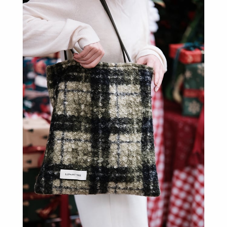 ウールライクなブークレ調で仕上げたチェック柄ショルダートート。大きめサイズで、荷物の多い方にも安心の収納力。カーキカラーが大人のカジュアルスタイルに合い、暖かみのある素材が、秋冬コーデをよりおしゃれに仕上げてくれます。