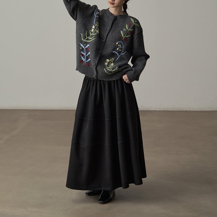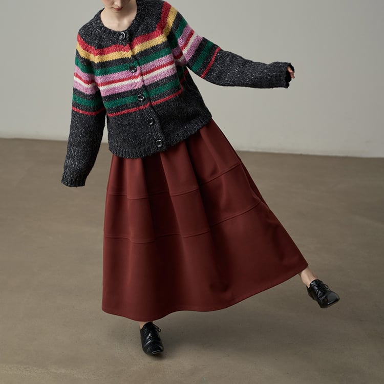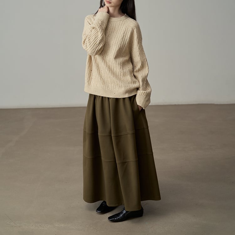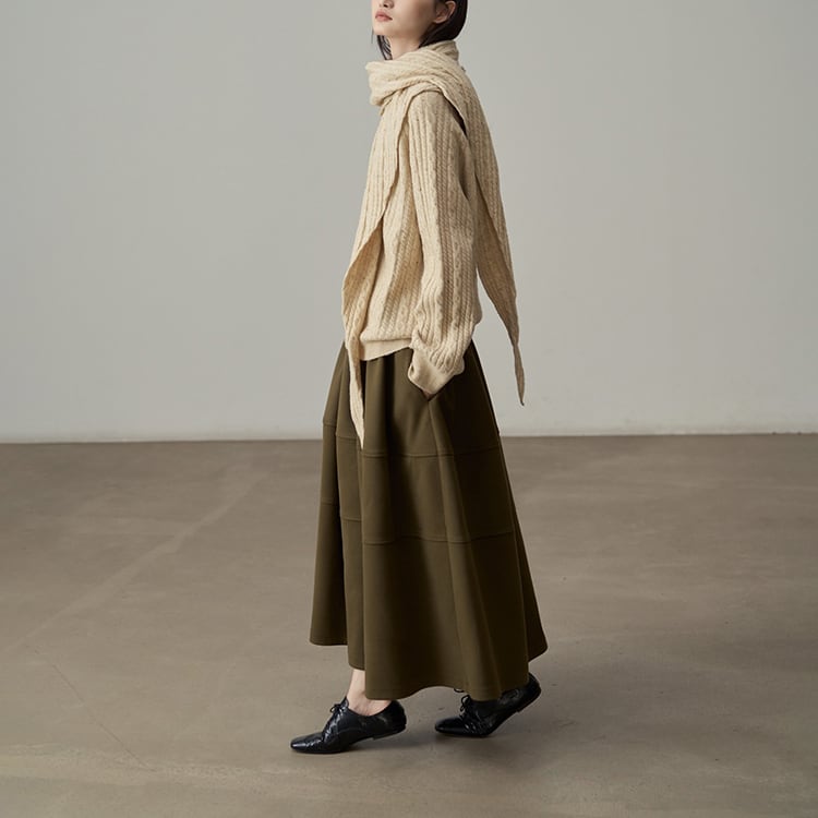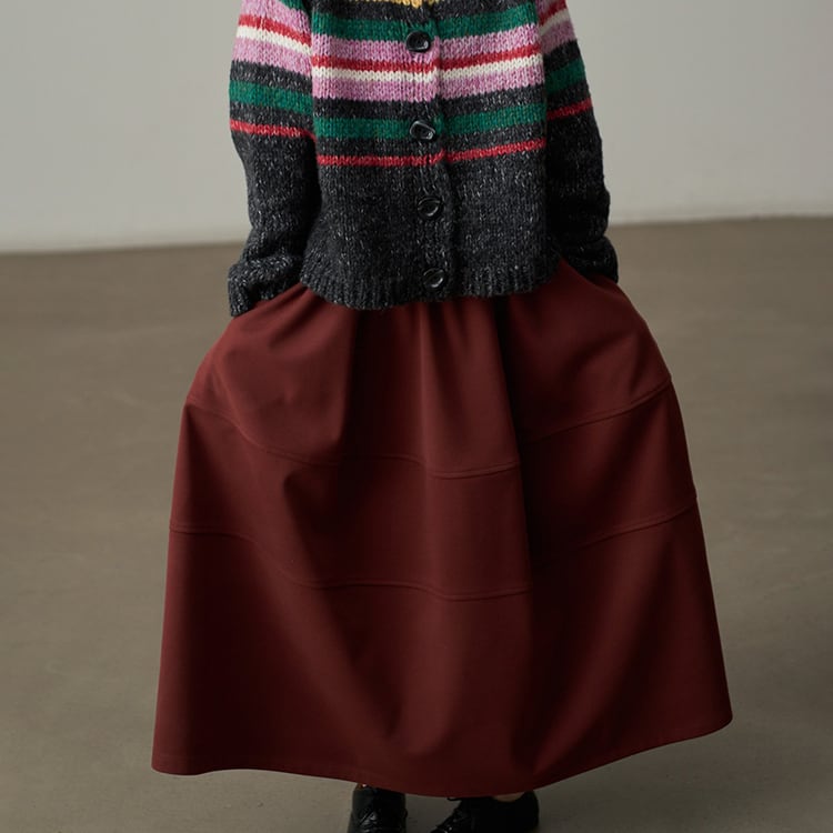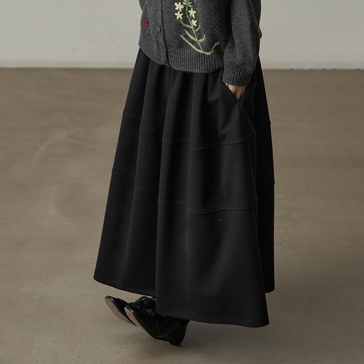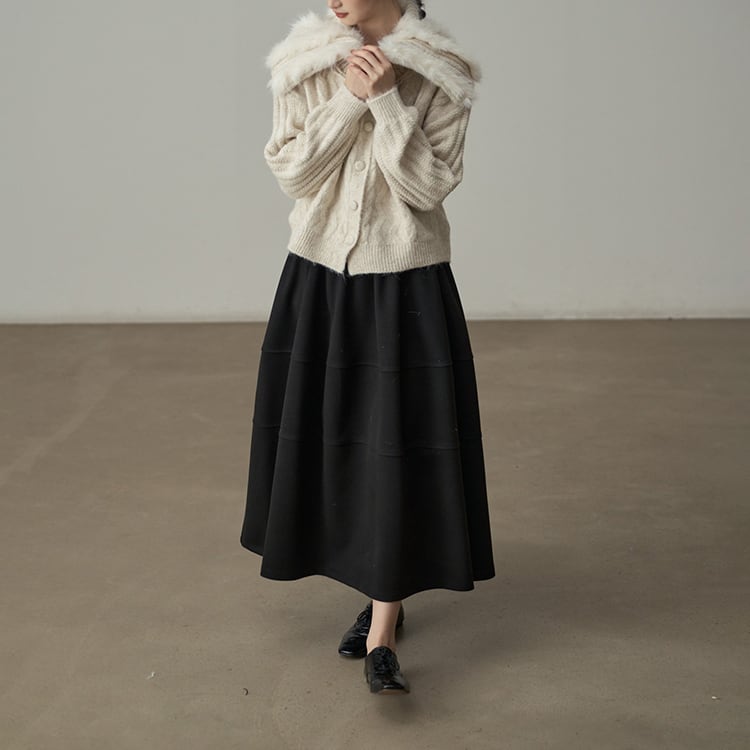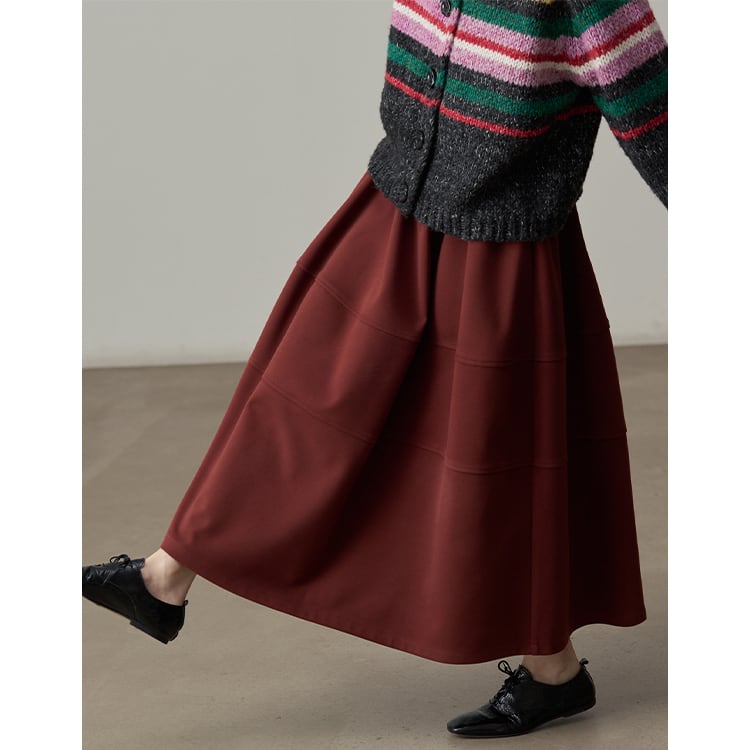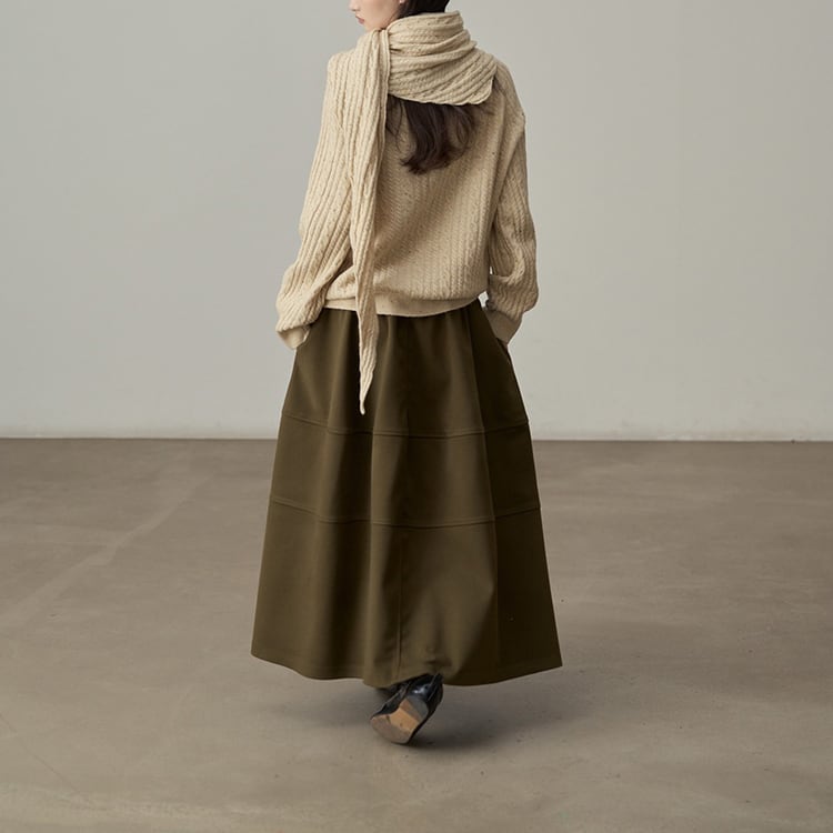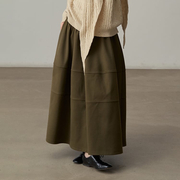 ウールタッチのAラインマキシ丈スカート。三段の切り替えデザインが、単調になりがちな冬のコーデに立体感とこなれ感をプラス。ウエストはゴム仕様で、ボリュームがあるのに、すとんと落ちる素材感なので、着膨れして見えないのが嬉しいポイント。広がりすぎないティアードデザインが、シンプルながらもおしゃれな印象を与えるスカートです。 【サイズ】 One size : ウエスト66-100cm / ヒップ178cm / 裾224cm / スカート丈86cm *モデル身長166cm 【カラー】 オリーブグリーン / ワインレッド / ライトグレー / ブラック 【素材】 ポリエステル100% 【注意事項】 ・タイミングによっては商品在庫切れにより、注文キャンセルとさせていただく恐れもございますので、予めご了承くださいませ。 ・こちらは輸入品となります。日本製とは検品基準が異なる為、新品未使用品でもごくわずかな汚れやほつれがある場合もございます。 ・仕入れ工場を変えることがあるため、記載サイズと若干異なる場合がございます。 ・商品の色味は、お手持ちのスマートフォン画面によって実物と若干異なる場合がございます。 ・イメージ違いやサイズ交換等、お客さまご都合による交換、返品は対応出来かねます。 ■選べるお支払い方法 ・クレジットカード決済(VISA/Master/JCB/AMEX) ・Amazon pay ・キャリア決済(docomo/au/Softbank/Y!mobile) ・あと払いPayID ■お届けについて こちらの商品は海外店舗より直接発送となる為、 ご入金から10日~3週間前後での発送となります。 ↓ご購入前にこちらをお読みください https://closetly.shopselect.net/about