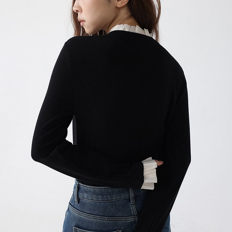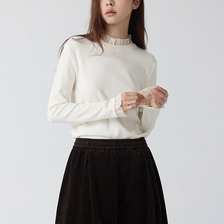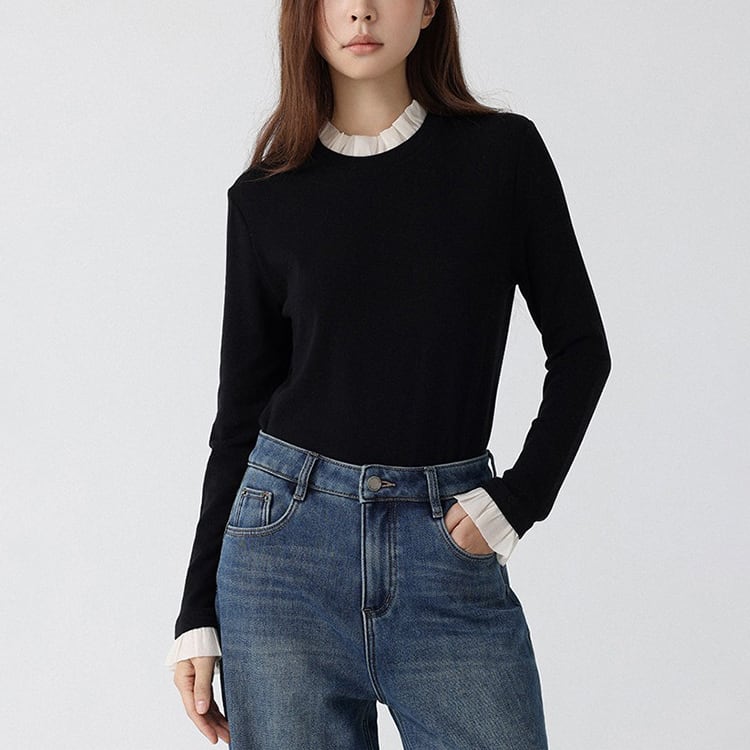 首元と袖口に施したフリルデザインが、シンプルながらも女性らしい印象を演出する長袖カットソー。やわらかく伸びのある素材を使用し、程よくフィットするシルエット。上品なフリルネックデザインがオフィスカジュアルや、ジャケットやニットのインナーとしても使いやすく、オンオフ問わず活躍します。 【サイズ】 M:肩幅40cm / バスト86cm / 袖丈60cm / 袖口24cm / 裾90cm / 着丈62cm L:肩幅41cm / バスト90cm / 袖丈61cm / 袖口25cm / 裾94cm / 着丈63cm *モデル身長168cm(Lサイズ着用) 【カラー】 ブラック / オフホワイト 【素材】 ビスコース37.6% コットン28.3% アクリル28.3% ポリウレタン5.8% 【注意事項】 ・タイミングによっては商品在庫切れにより、注文キャンセルとさせていただく恐れもございますので、予めご了承くださいませ。 ・こちらは輸入品となります。日本製とは検品基準が異なる為、新品未使用品でもごくわずかな汚れやほつれがある場合もございます。 ・仕入れ工場を変えることがあるため、記載サイズと若干異なる場合がございます。 ・商品の色味は、お手持ちのスマートフォン画面によって実物と若干異なる場合がございます。 ・イメージ違いやサイズ交換等、お客さまご都合による交換、返品は対応出来かねます。 ■選べるお支払い方法 ・クレジットカード決済(VISA/Master/JCB/AMEX) ・Amazon pay ・キャリア決済(docomo/au/Softbank/Y!mobile) ・あと払いPayID ■お届けについて こちらの商品は海外店舗より直接発送となる為、 ご入金から10日~3週間前後での発送となります。 ↓ご購入前にこちらをお読みください https://closetly.shopselect.net/about