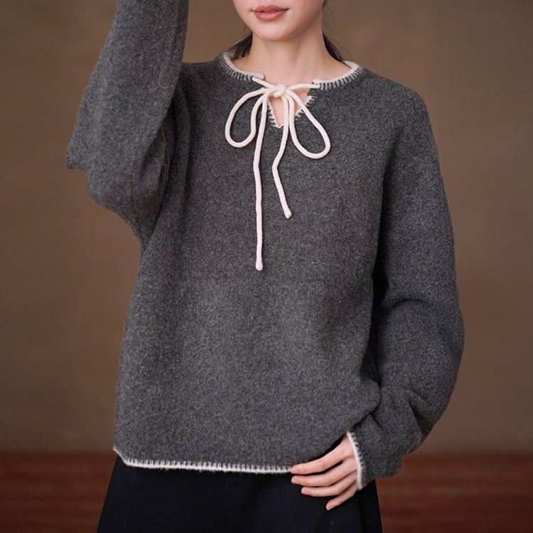 バイカラーレースアップニットプルオーバー No.5512