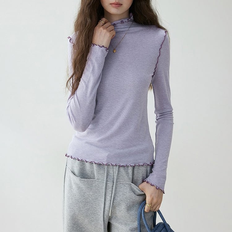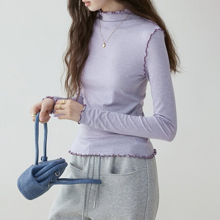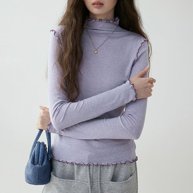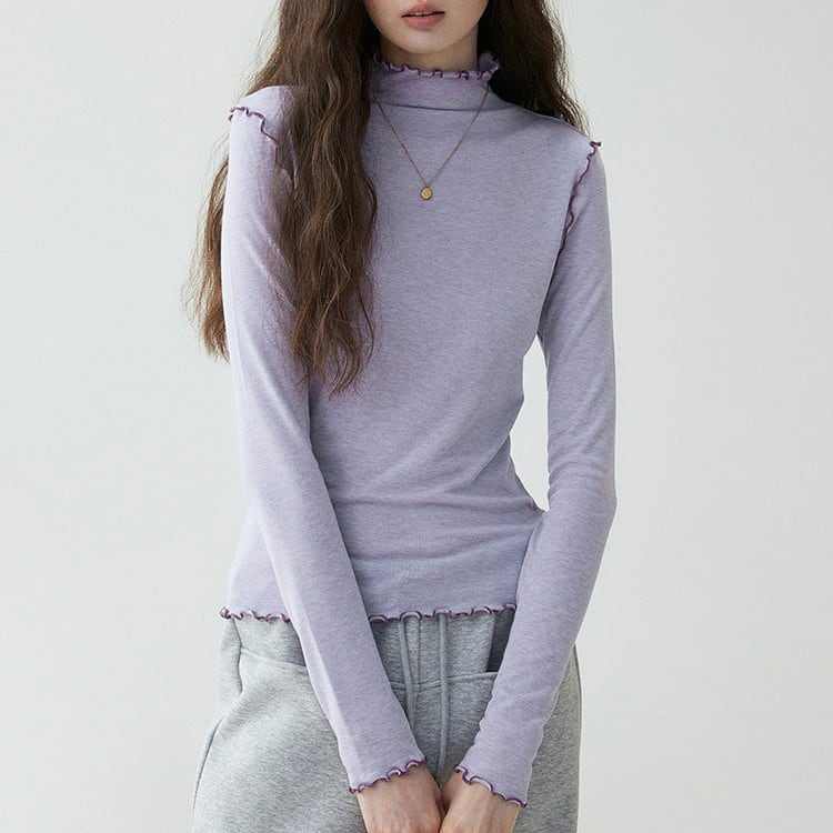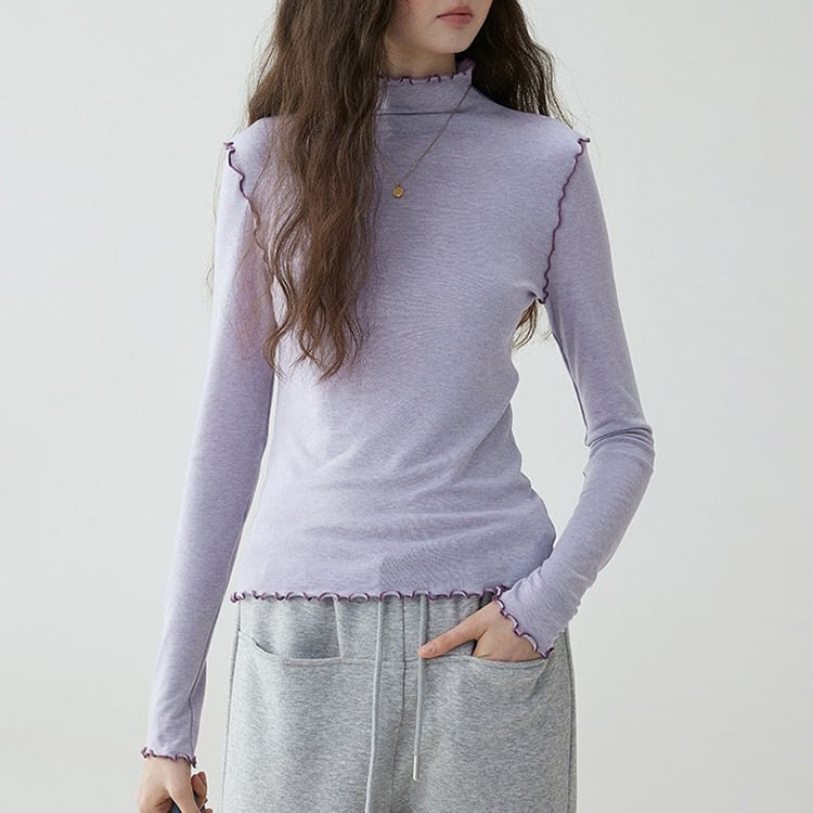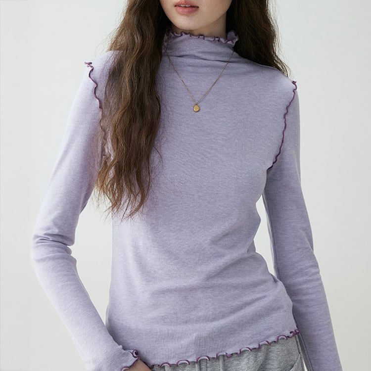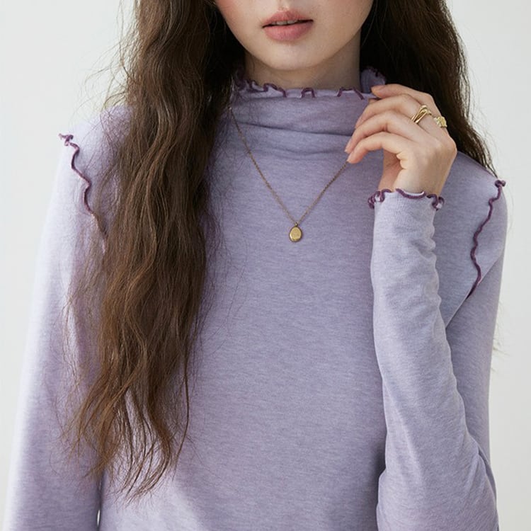 首元や袖口からチラリと見えるメロウ加工がフェミニンなハイネックトップス。ほどよくフィットするシルエットで、体のラインを拾いすぎずスマートに着用いただけます。ニットやカーディガン、スウェットのインナーとしてレイヤードするだけで、グッと華やかになり、薄手ながらウール混でしっかり暖かい優秀アイテムです。