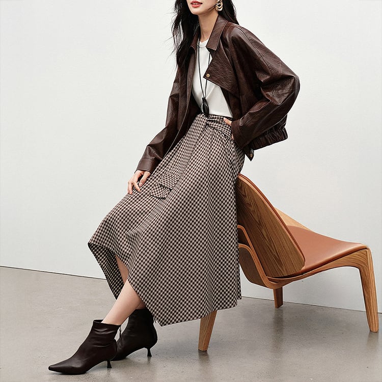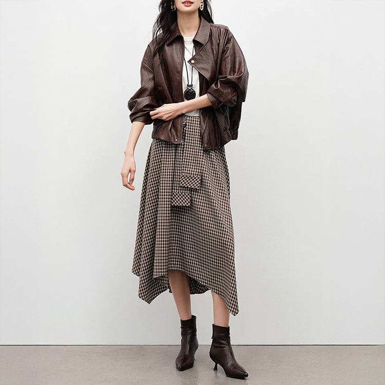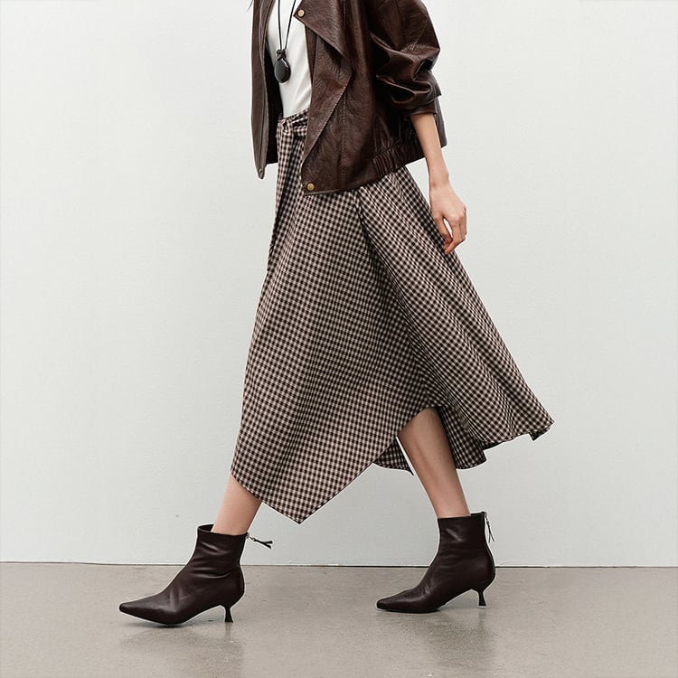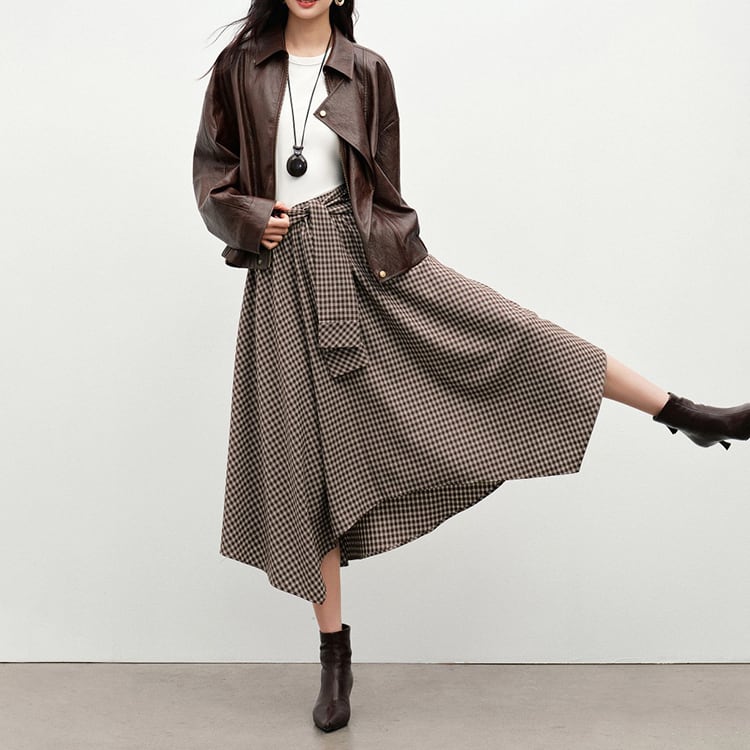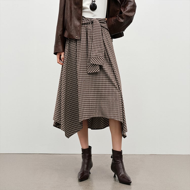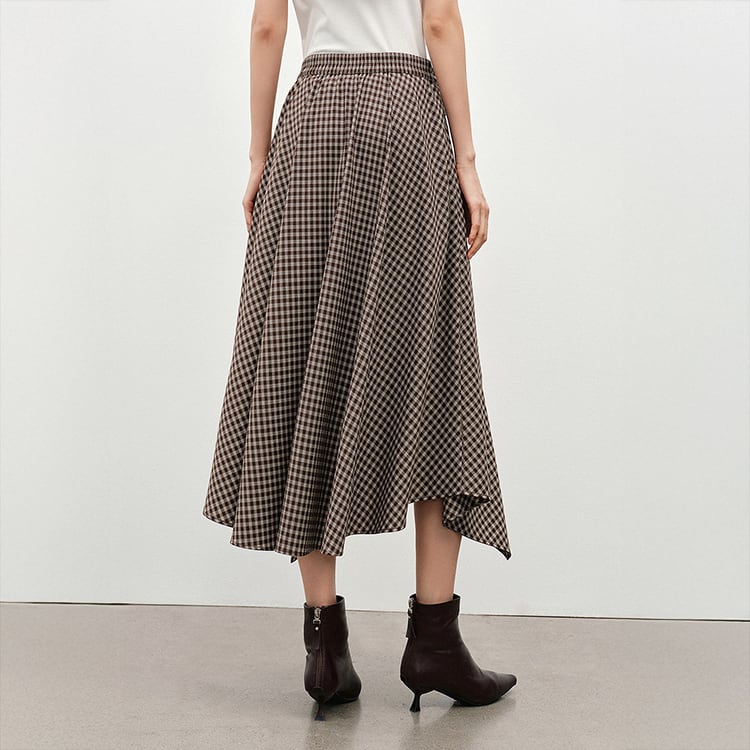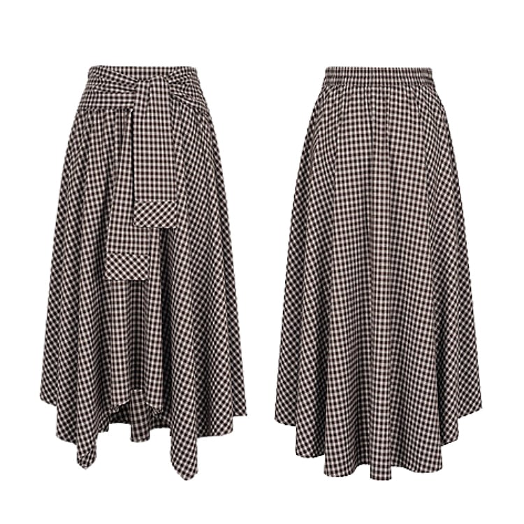 ギンガムチェック アシンメトリー ロングスカート No.6003