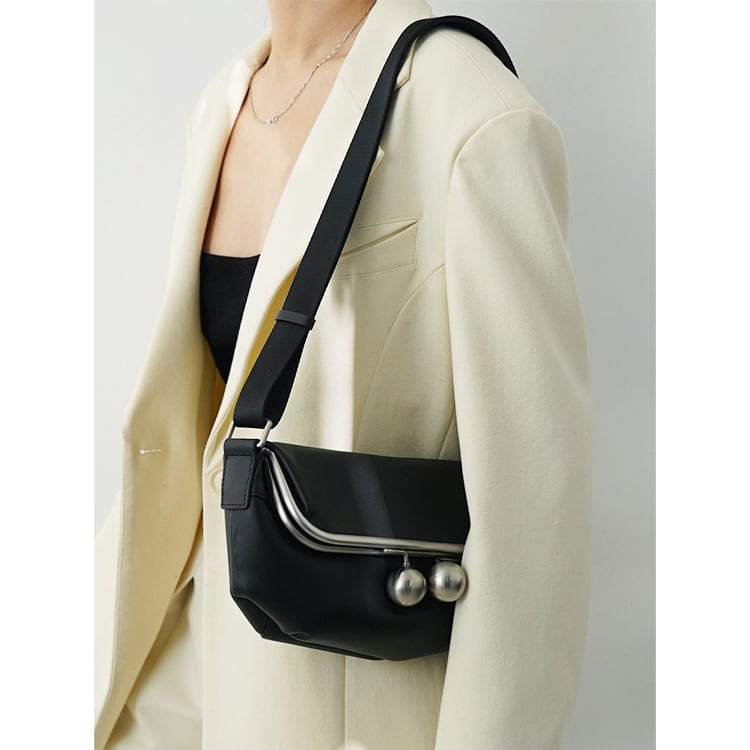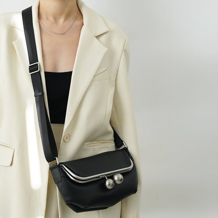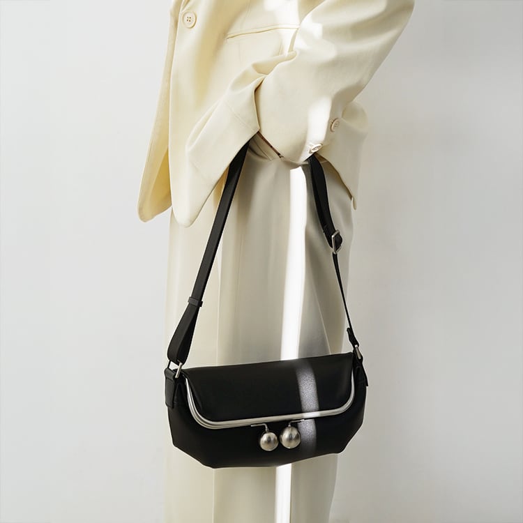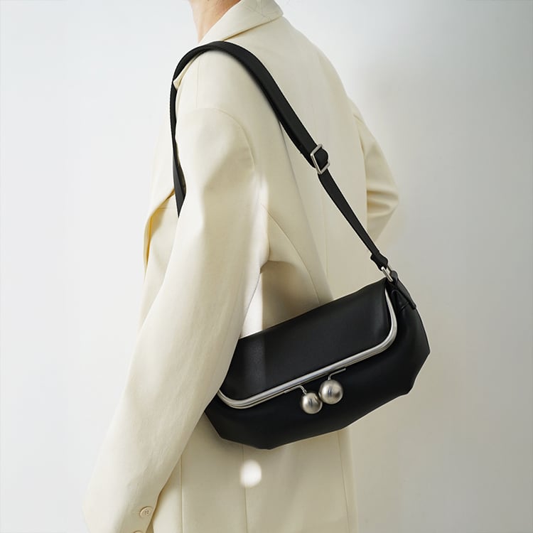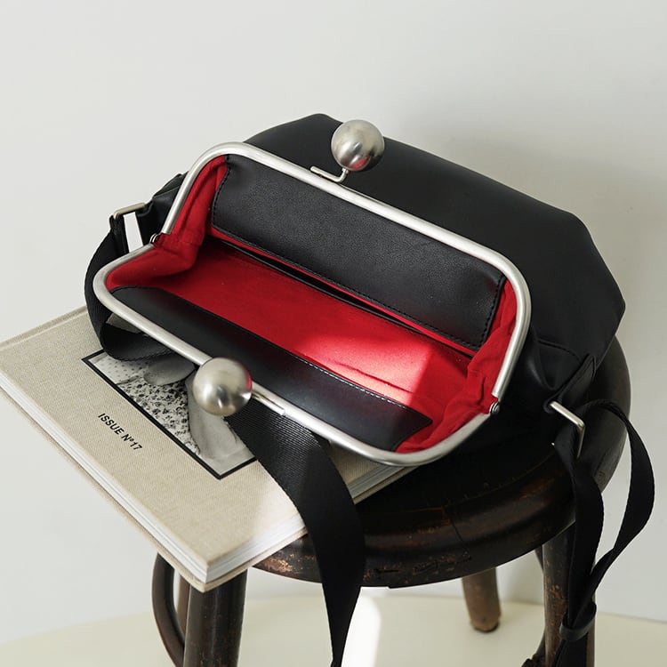 上質なレザーを使用した、がま口デザインの本革ミニバッグ。シンプルなフォルムに、丸みのある金具が上品なアクセントに。斜めがけ・ワンショルダーの2way仕様に、しっかりとした作りで型崩れしにくく、カジュアルすぎず大人のデイリーバッグに最適です。