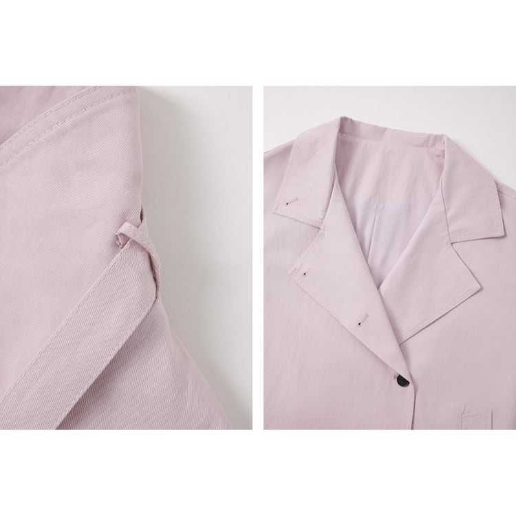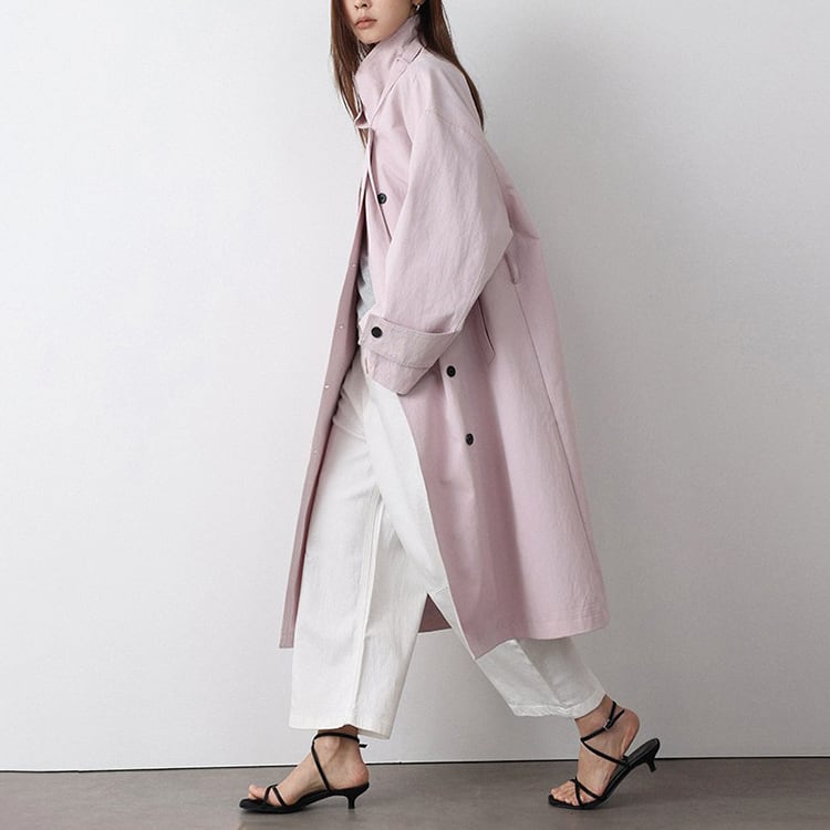 軽やかで程よいハリ感が魅力のミドル丈トレンチコート。テーラードカラーとボタンフロントがクラシックな印象で、シンプルながら存在感のある仕上がりです。ナチュラルなシワ加工がこなれた印象を演出し、羽織るだけで大人カジュアルなスタイルが完成し、季節の変わり目に頼れる一着です。 【サイズ】 M:肩幅54cm / バスト122cm / 袖丈51.5cm / 袖口39cm / 裾140cm / 着丈113cm L:肩幅55cm / バスト126cm / 袖丈52.5cm / 袖口40cm / 裾144cm / 着丈114cm *モデル身長168cm(Lサイズ着用) 【カラー】 ピンク / ブラック / カーキ 【素材】 表地:ナイロン52% コットン48% 裏地:ポリエステル100% 【注意事項】 ・タイミングによっては商品在庫切れにより、注文キャンセルとさせていただく恐れもございますので、予めご了承くださいませ。 ・こちらは輸入品となります。日本製とは検品基準が異なる為、新品未使用品でもごくわずかな汚れやほつれがある場合もございます。 ・仕入れ工場を変えることがあるため、記載サイズと若干異なる場合がございます。 ・商品の色味は、お手持ちのスマートフォン画面によって実物と若干異なる場合がございます。 ・イメージ違いやサイズ交換等、お客さまご都合による交換、返品は対応出来かねます。 ■選べるお支払い方法 ・クレジットカード決済(VISA/Master/JCB/AMEX) ・Amazon pay ・キャリア決済(docomo/au/Softbank/Y!mobile) ・あと払いPayID ■お届けについて こちらの商品は海外店舗より直接発送となる為、 ご入金から10日~3週間前後での発送となります。 ↓ご購入前にこちらをお読みください https://closetly.shopselect.net/about