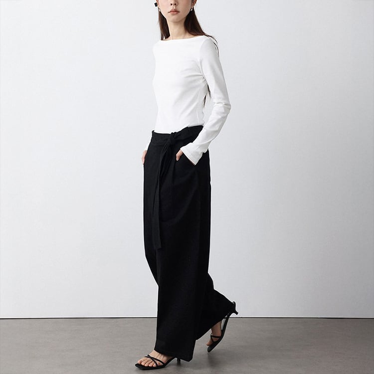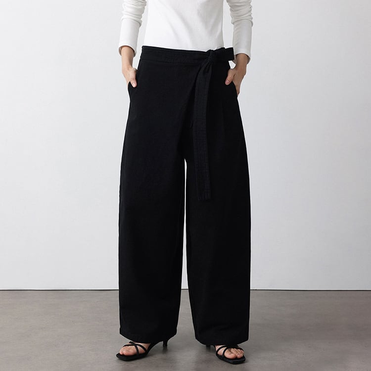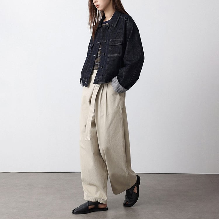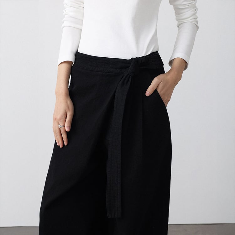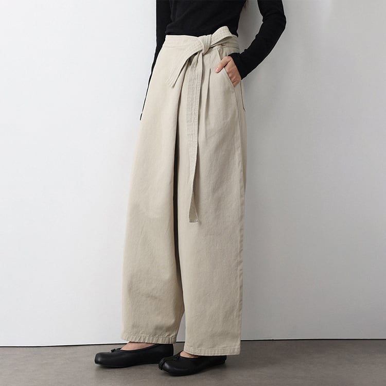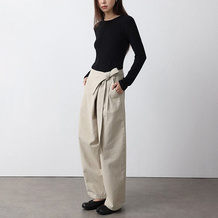 フロントのラップ風デザインが特徴のアンクル丈 (9分丈) のワイドパンツ。タックの縦ラインと高めのウエスト位置で結ぶリボンが、脚長効果を抜群に発揮。脚のラインを拾わないワイドシルエットに、アンクル丈で足首を見せることで抜け感を演出。洗いざらしのような風合いが心地よい、大人のためのコットンパンツです。 【サイズ】 S:ウエスト66cm / ヒップ105cm / 股上35cm / わたり73cm / 裾囲52cm / パンツ丈95cm M:ウエスト70cm / ヒップ109cm / 股上35.5cm / わたり75cm / 裾囲54cm / パンツ丈96cm L:ウエスト74cm / ヒップ113cm / 股上36cm / わたり77cm / 裾囲56cm / パンツ丈97cm *モデル身長168cm(Mサイズ着用) 【カラー】 ベージュ / ブラック 【素材】 コットン100% 【注意事項】 ・タイミングによっては商品在庫切れにより、注文キャンセルとさせていただく恐れもございますので、予めご了承くださいませ。 ・こちらは輸入品となります。日本製とは検品基準が異なる為、新品未使用品でもごくわずかな汚れやほつれがある場合もございます。 ・仕入れ工場を変えることがあるため、記載サイズと若干異なる場合がございます。 ・商品の色味は、お手持ちのスマートフォン画面によって実物と若干異なる場合がございます。 ・イメージ違いやサイズ交換等、お客さまご都合による交換、返品は対応出来かねます。 ■選べるお支払い方法 ・クレジットカード決済(VISA/Master/JCB/AMEX) ・Amazon pay ・キャリア決済(docomo/au/Softbank/Y!mobile) ・あと払いPayID ■お届けについて こちらの商品は海外店舗より直接発送となる為、 ご入金から10日~3週間前後での発送となります。 ↓ご購入前にこちらをお読みください https://closetly.shopselect.net/about