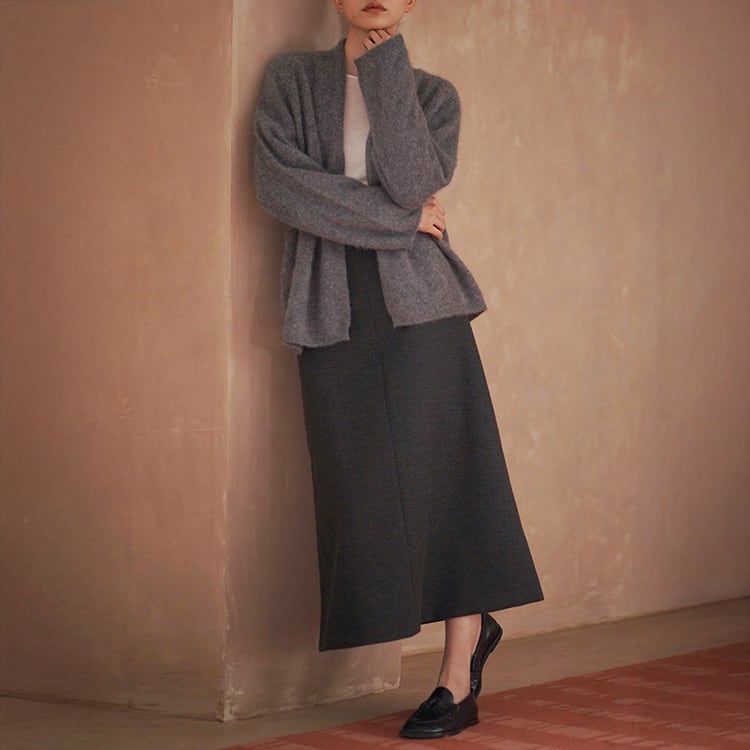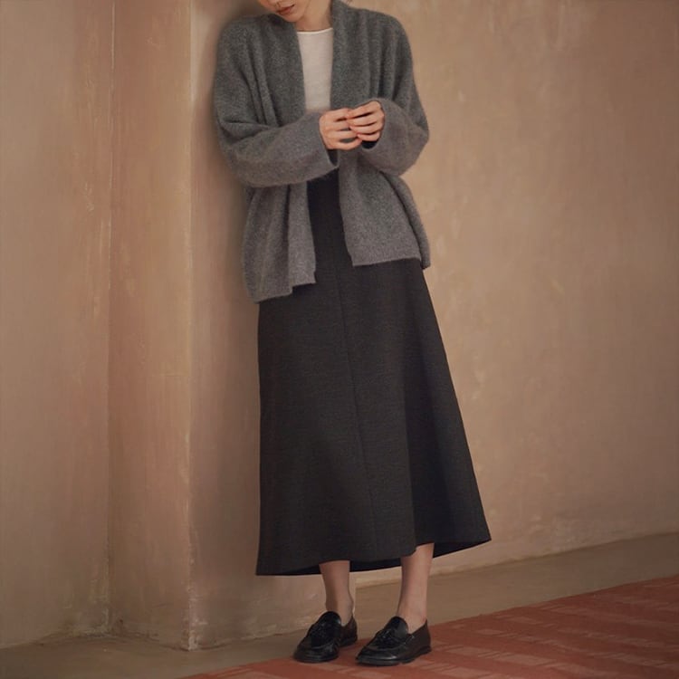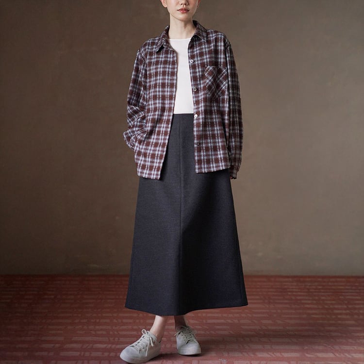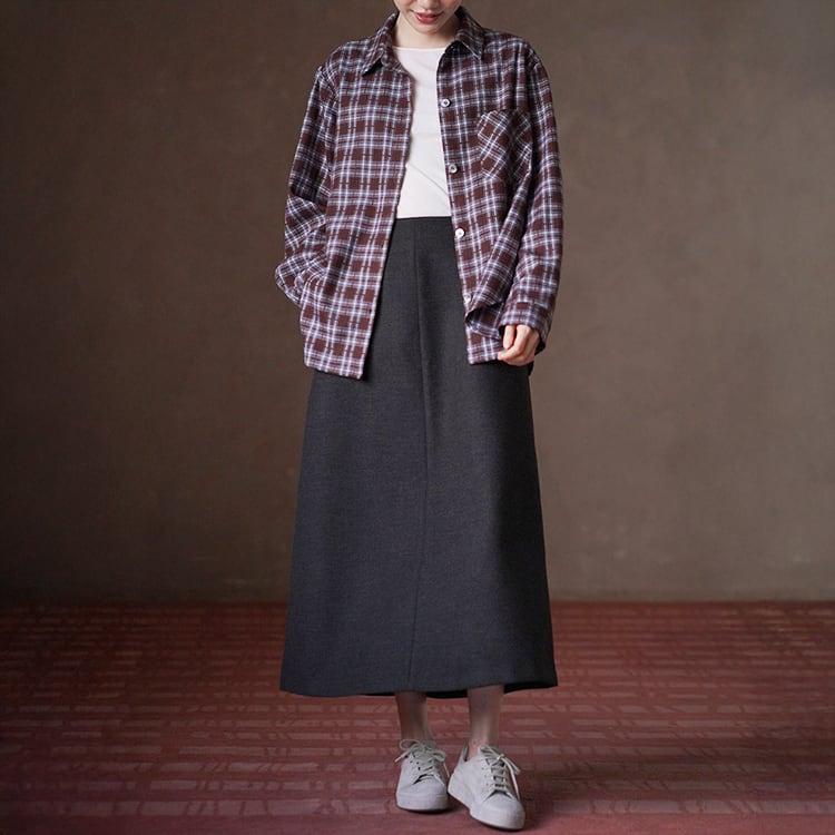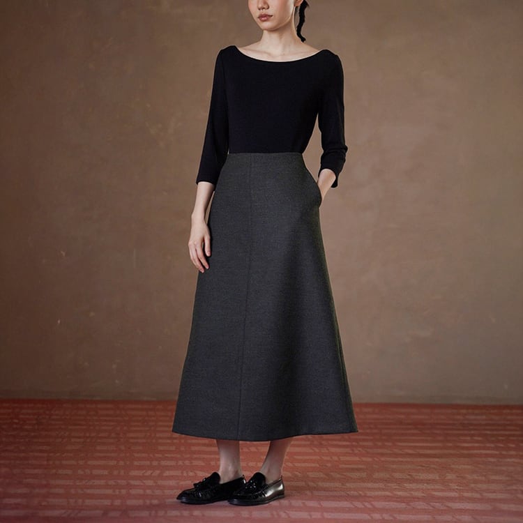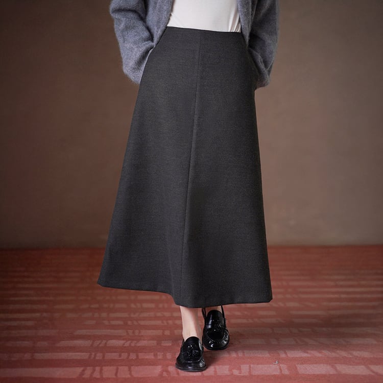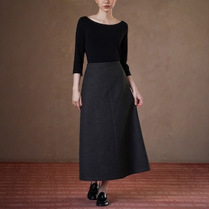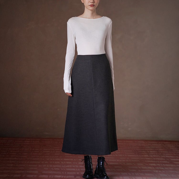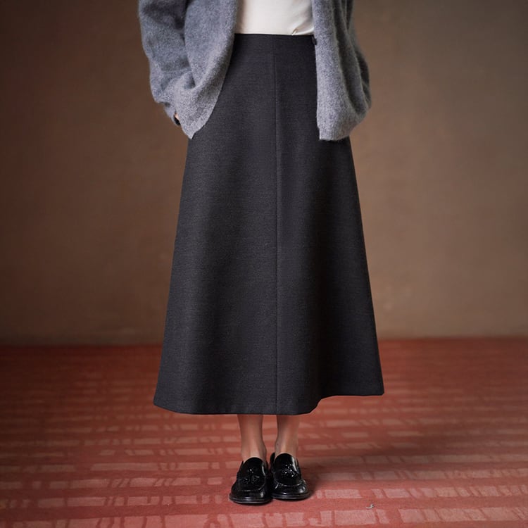 広がりすぎない絶妙なAラインシルエットが魅力的なAラインロングスカート。ハイウエスト設計に、センターシーム(中心の切り替え)が縦のラインを強調し、美シルエット、履くだけでスタイルアップを叶えます。落ち着いた大人カラーに、ミニマルなデザインなので、流行に左右されず長く愛用いただける一品です。