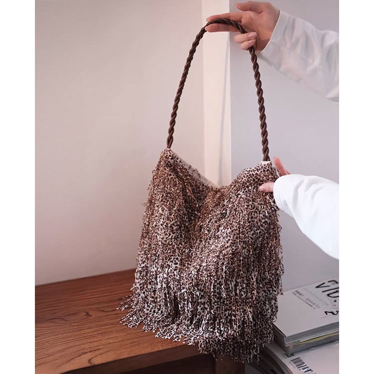 ソフトレオパード フリンジショルダー《2 types》No.6054