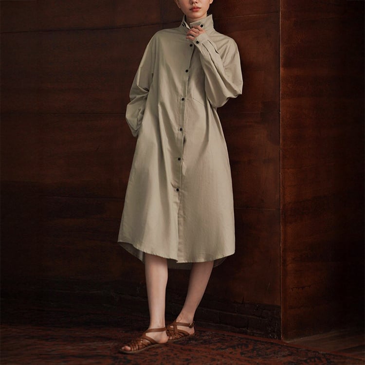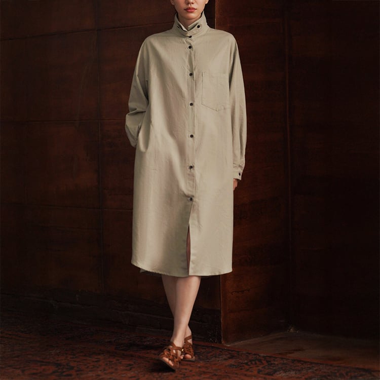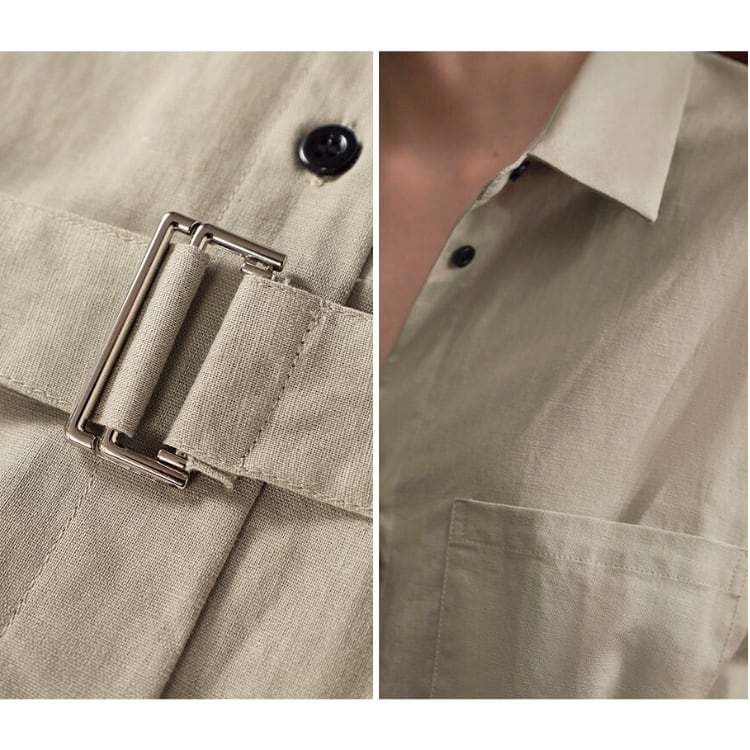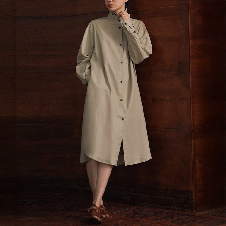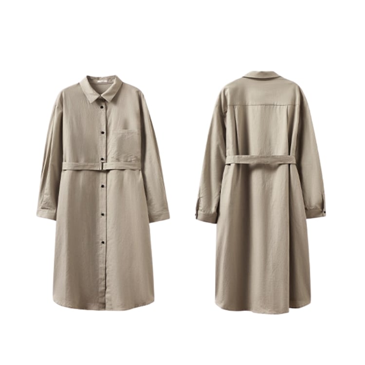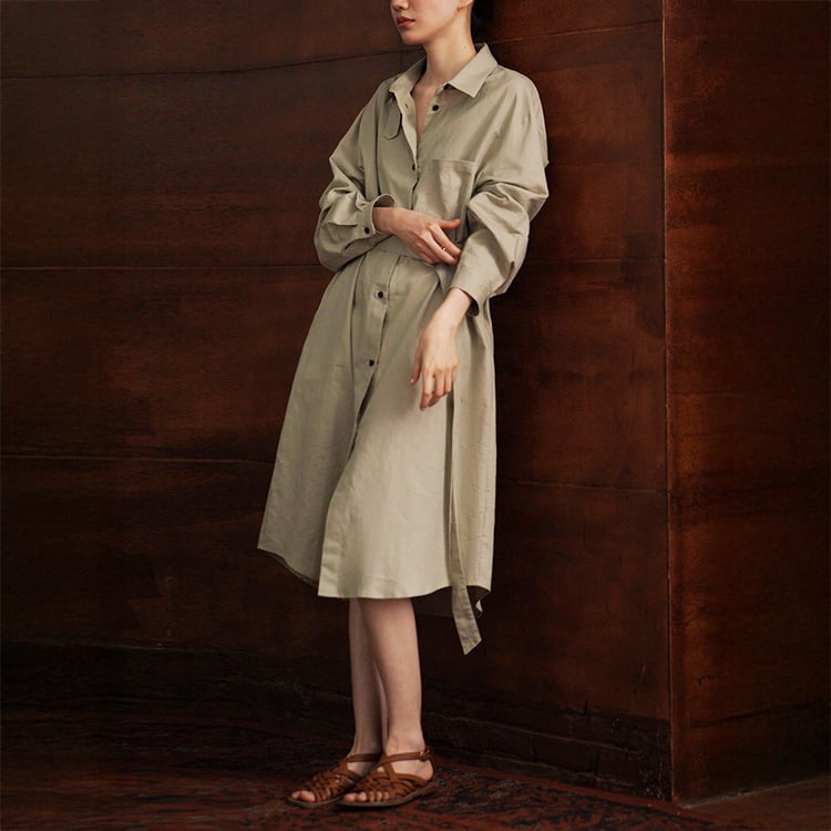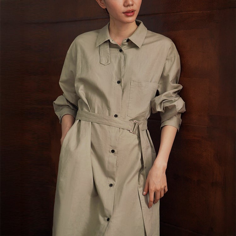 ナチュラルな風合いが魅力のリネンコットン混シャツワンピース。襟元はシャツカラータイプで、着こなしのアレンジが楽しめ、襟を開ければカジュアルで軽やかな印象に、上までボタンを留めればスタンドネックのような端正なスタイルに。ウエストベルト付きでシルエットの調整が可能。ナチュラルカラーで着回し力も高く、通勤・カフェ・ショッピングなど様々なシーンにおすすめです。