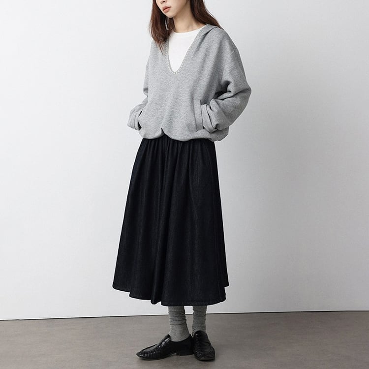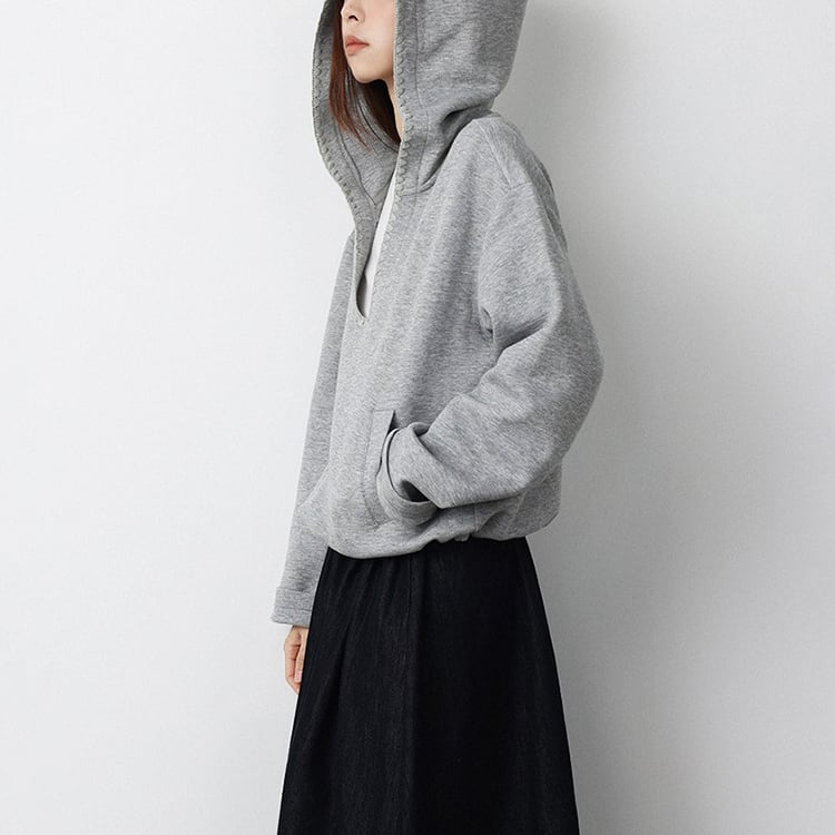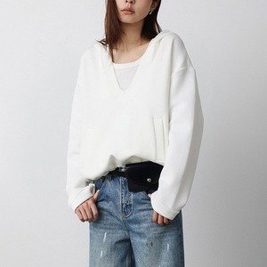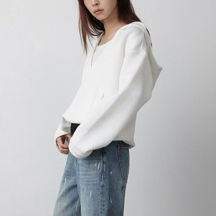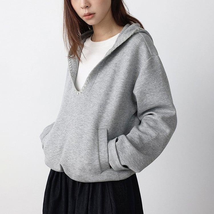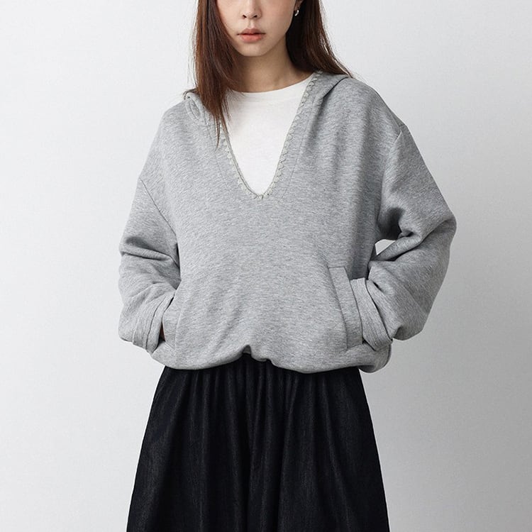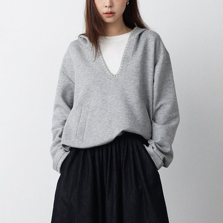深めのVネックデザインが特徴の、抜け感のあるフード付きスウェット。深めのVネックがが顔周りをすっきり見せ、レイヤードスタイルも楽しめます。首元はステッチの縁取りデザインでさりげないアクセントをプラス。裾にはドローコードが付いており、シルエット調整も可能。ゆったりしたシルエットでトレンド感もあり、カジュアルスタイルにぴったりの一着です。 【サイズ】 M:肩幅52.5cm / バスト114cm / 袖丈55cm / 袖口29cm / 裾104cm / 着丈54.5cm L:肩幅53.5cm / バスト118cm / 袖丈56cm / 袖口30cm / 裾108cm / 着丈55.5cm *モデル身長168cm(Lサイズ着用) 【カラー】 グレー / ホワイト 【素材】 コットン62% ポリエステル38% 【注意事項】 ・タイミングによっては商品在庫切れにより、注文キャンセルとさせていただく恐れもございますので、予めご了承くださいませ。 ・こちらは輸入品となります。日本製とは検品基準が異なる為、新品未使用品でもごくわずかな汚れやほつれがある場合もございます。 ・仕入れ工場を変えることがあるため、記載サイズと若干異なる場合がございます。 ・商品の色味は、お手持ちのスマートフォン画面によって実物と若干異なる場合がございます。 ・イメージ違いやサイズ交換等、お客さまご都合による交換、返品は対応出来かねます。 ■選べるお支払い方法 ・クレジットカード決済(VISA/Master/JCB/AMEX) ・Amazon pay ・キャリア決済(docomo/au/Softbank/Y!mobile) ・あと払いPayID ■お届けについて こちらの商品は海外店舗より直接発送となる為、 ご入金から10日~3週間前後での発送となります。 ↓ご購入前にこちらをお読みください https://closetly.shopselect.net/about