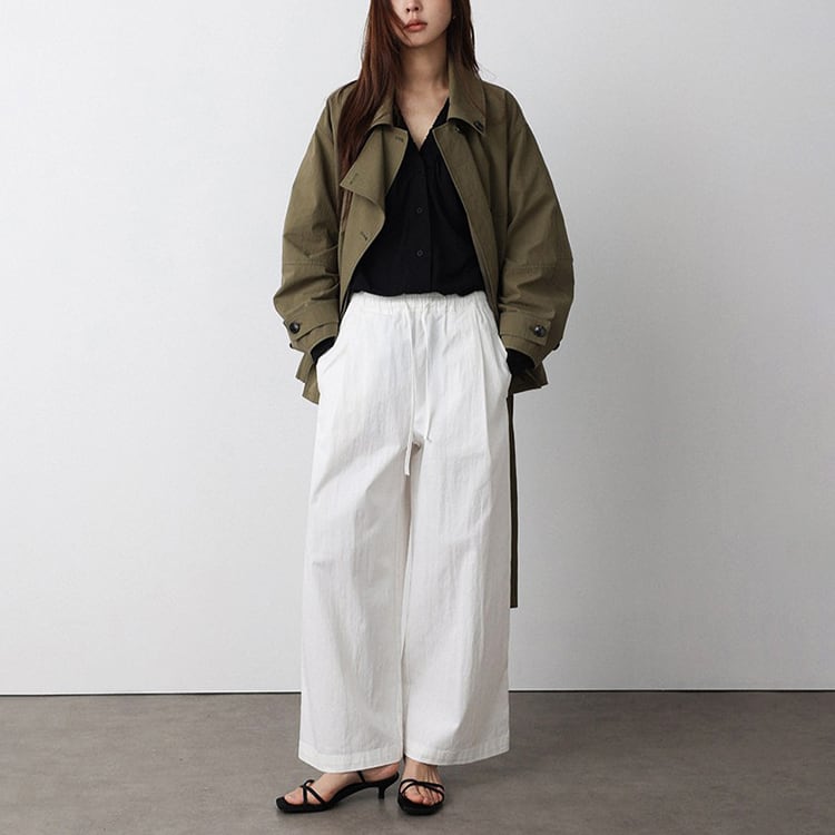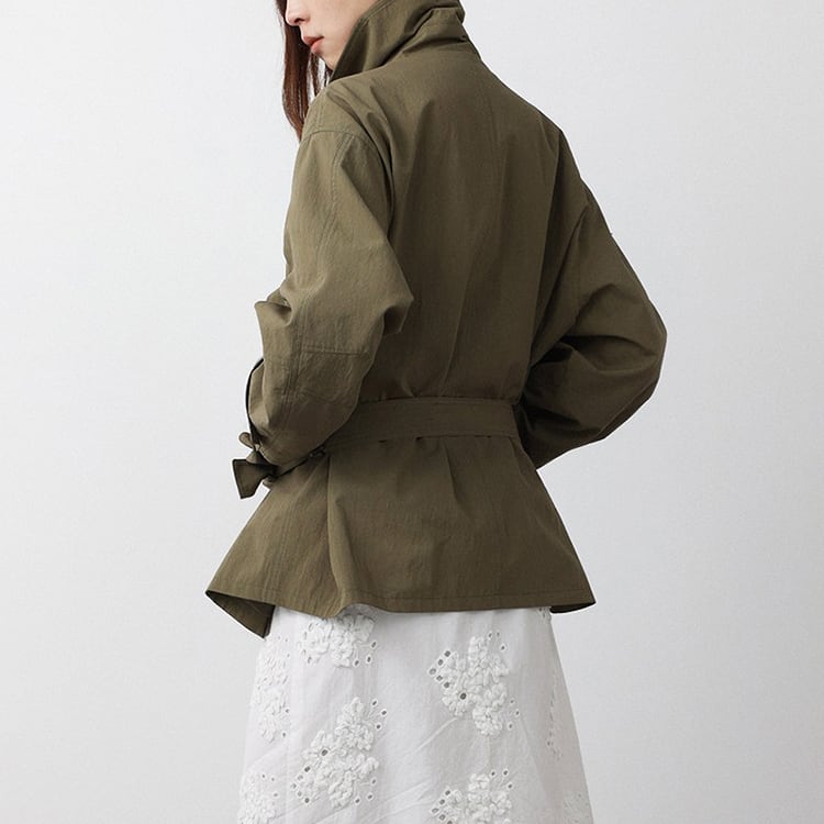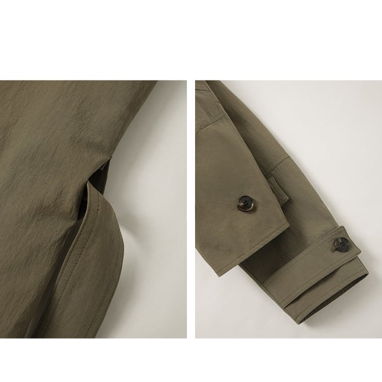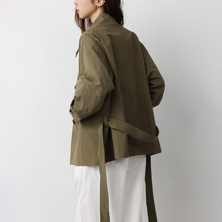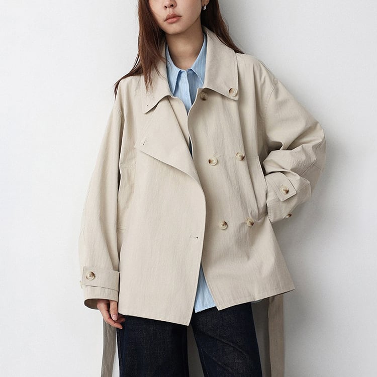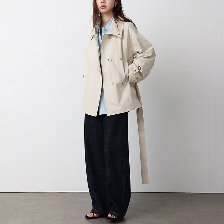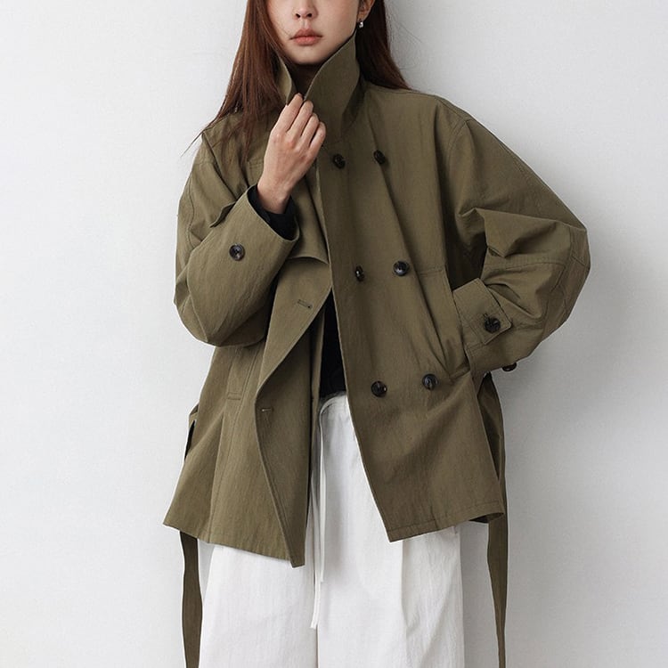 春先のコーディネートにぴったりな、ショート丈のトレンチコート。顔まわりをすっきり見せる襟デザインと、ダブル風のフロントデザインとベルト付。ゆるく羽織ればカジュアルな雰囲気に、ウエストベルトを結べば女性らしいシルエットに。通勤スタイルから休日のお出かけまで幅広く着回しできるアイテムです。 【サイズ】 M:肩幅52cm / バスト140cm / 袖丈53cm / 袖口31cm / 裾138cm / 着丈70cm L:肩幅53cm / バスト144cm / 袖丈54cm / 袖口32cm / 裾142cm / 着丈71cm *モデル身長168cm(Mサイズ着用) 【カラー】 カーキグリーン / ライトベージュ 【素材】 コットン86% ナイロン14% 【注意事項】 ・タイミングによっては商品在庫切れにより、注文キャンセルとさせていただく恐れもございますので、予めご了承くださいませ。 ・こちらは輸入品となります。日本製とは検品基準が異なる為、新品未使用品でもごくわずかな汚れやほつれがある場合もございます。 ・仕入れ工場を変えることがあるため、記載サイズと若干異なる場合がございます。 ・商品の色味は、お手持ちのスマートフォン画面によって実物と若干異なる場合がございます。 ・イメージ違いやサイズ交換等、お客さまご都合による交換、返品は対応出来かねます。 ■選べるお支払い方法 ・クレジットカード決済(VISA/Master/JCB/AMEX) ・Amazon pay ・キャリア決済(docomo/au/Softbank/Y!mobile) ・あと払いPayID ■お届けについて こちらの商品は海外店舗より直接発送となる為、 ご入金から10日~3週間前後での発送となります。 ↓ご購入前にこちらをお読みください https://closetly.shopselect.net/about