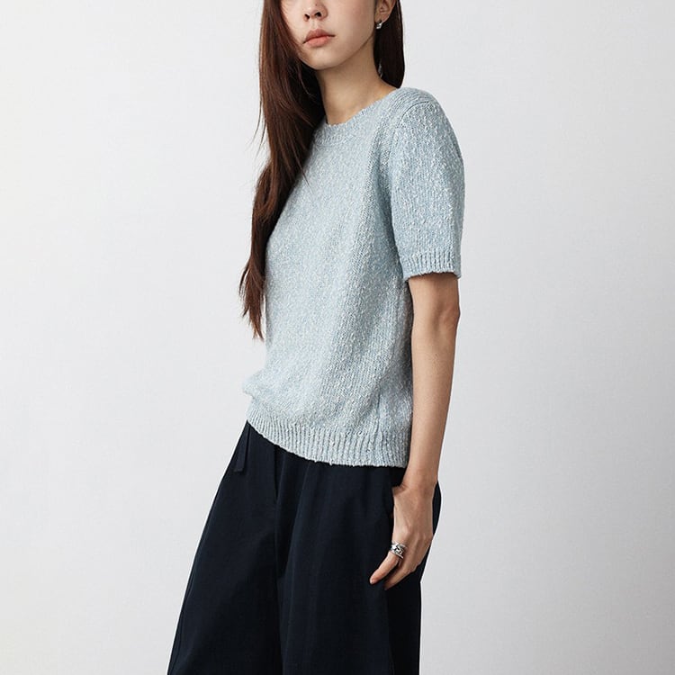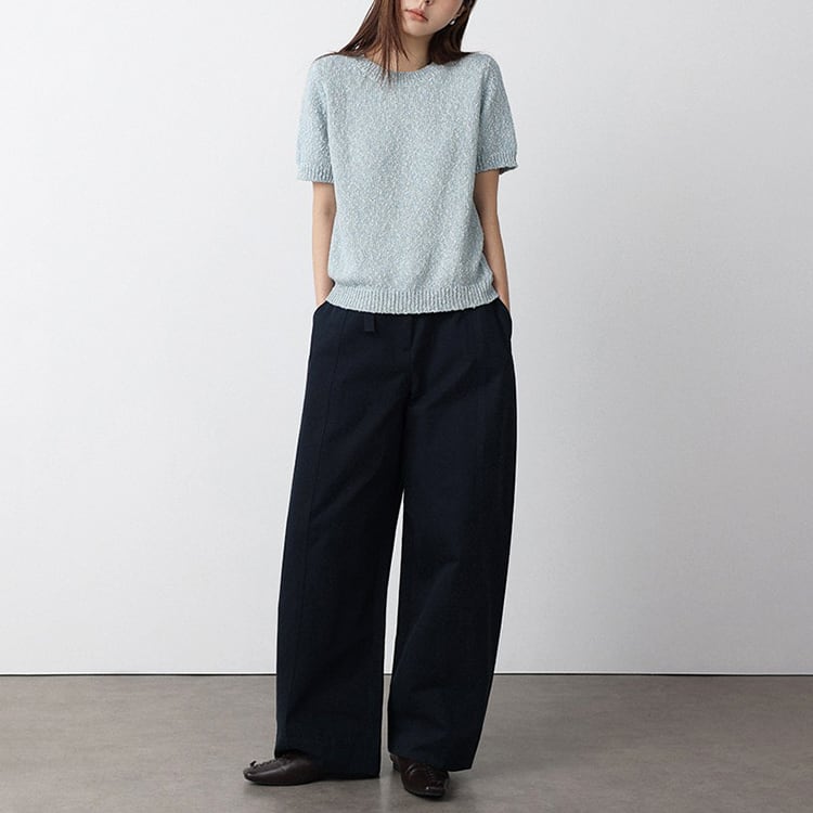 ポコポコとした編み地の表情豊かなニュアンスのあるニットプルオーバー。ラウンドネックが顔周りをスッキリと見せ、程よいゆとりのあるレギュラー丈。ニット特有のチクチク感がなく、素肌に心地よいプラントコットンを使用。シンプルなコーディネートも、この一枚で洗練された大人カジュアルへと格上げしてくれる一着です。 【サイズ】 M:肩幅36cm / バスト92cm / 袖丈23cm / 袖口24cm / 裾80cm / 着丈55.5cm L:肩幅37cm / バスト96cm / 袖丈24cm / 袖口25cm / 裾84cm / 着丈56.5cm *モデル身長168cm(Lサイズ着用) 【カラー】 オフホワイト / ライトブルー 【素材】 プラントコットン (植物綿) 63% ポリエステル37% 【注意事項】 ・タイミングによっては商品在庫切れにより、注文キャンセルとさせていただく恐れもございますので、予めご了承くださいませ。 ・こちらは輸入品となります。日本製とは検品基準が異なる為、新品未使用品でもごくわずかな汚れやほつれがある場合もございます。 ・仕入れ工場を変えることがあるため、記載サイズと若干異なる場合がございます。 ・商品の色味は、お手持ちのスマートフォン画面によって実物と若干異なる場合がございます。 ・イメージ違いやサイズ交換等、お客さまご都合による交換、返品は対応出来かねます。 ■選べるお支払い方法 ・クレジットカード決済(VISA/Master/JCB/AMEX) ・Amazon pay ・キャリア決済(docomo/au/Softbank/Y!mobile) ・あと払いPayID ■お届けについて こちらの商品は海外店舗より直接発送となる為、 ご入金から10日~3週間前後での発送となります。 ↓ご購入前にこちらをお読みください https://closetly.shopselect.net/about