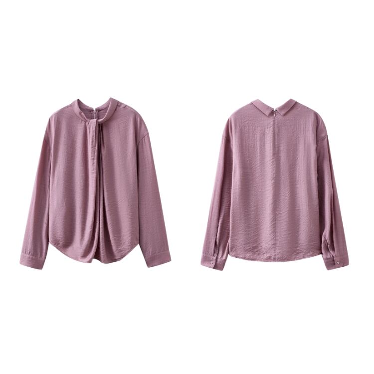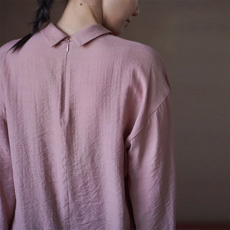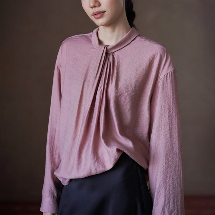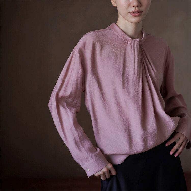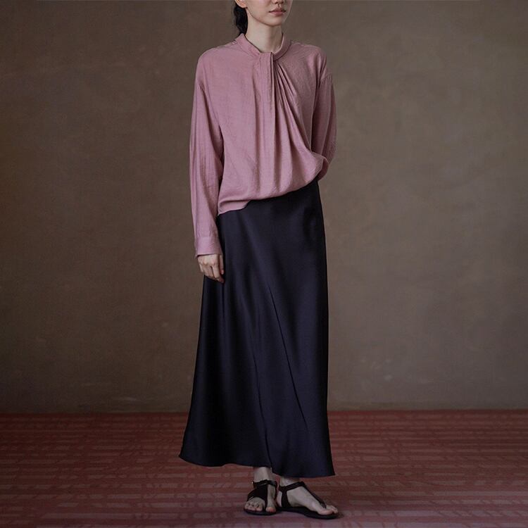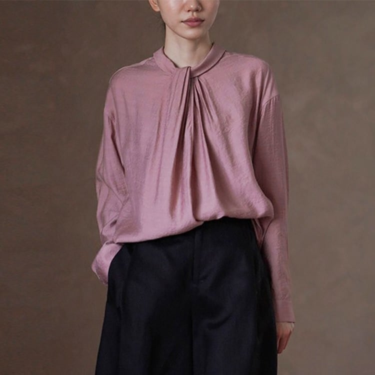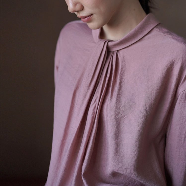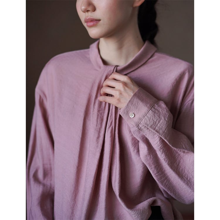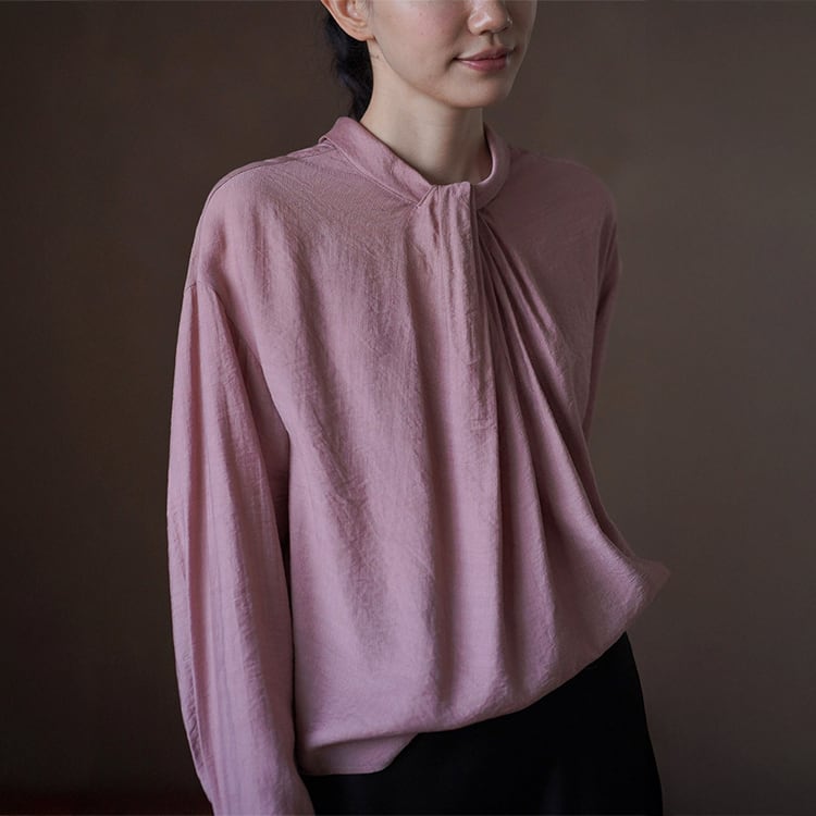 シンプルながら洗練された印象のドレープネックブラウス。タック入りデザインが立体感を生み、ドロップショルダーシルエットで、華奢見え効果も抜群。シワ感のある風合いがナチュラルな高級感を演出し、着るだけでこなれた印象に。シンプルなのに美しい落ち感が魅力的な、大人のための一枚です