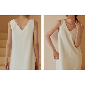 vネックがデコルテを美しく見せてくれるストレートドレス。ストレートなシルエットがスタイリッシュさを演出します。