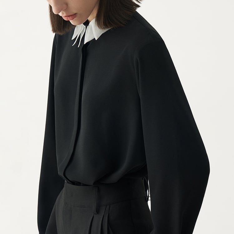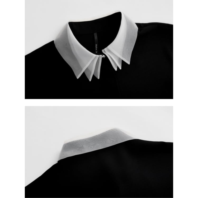 シアーな襟がかさなり、エレガントな雰囲気を演出するブラウスです。シワになりにくい素材を使用しているため、日常使いにも便利です。シックで洗練されたデザインが、大人の女性にぴったり。どんなシーンでも美しく着こなせます。 【サイズ】 S : 肩幅38cm / バスト102cm / 袖丈57.5cm / 着丈66cm M: 肩幅39cm / バスト106cm / 袖丈58.5cm / 着丈67cm L : 肩幅40cm / バスト110cm / 袖丈59.5cm / 着丈68cm 【カラー】 ブラック 【素材】 ポリエステル100% 【注意事項】 ・タイミングによっては商品在庫切れにより、注文キャンセルとさせていただく恐れもございますので、予めご了承くださいませ。 ・こちらは輸入品となります。日本製とは検品基準が異なる為、新品未使用品でもごくわずかな汚れやほつれがある場合もございます。 ・仕入れ工場を変えることがあるため、記載サイズと若干異なる場合がございます。 ・商品の色味は、お手持ちのスマートフォン画面によって実物と若干異なる場合がございます。 ・イメージ違いやサイズ交換等、お客さまご都合による交換、返品は対応出来かねます。 ■お届けについて こちらの商品は海外店舗より直接発送となる為、 ご入金から10日~3週間前後での発送となります。 ↓ご購入前にこちらをお読みください https://closetly.shopselect.net/about